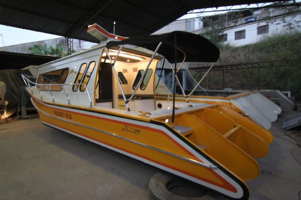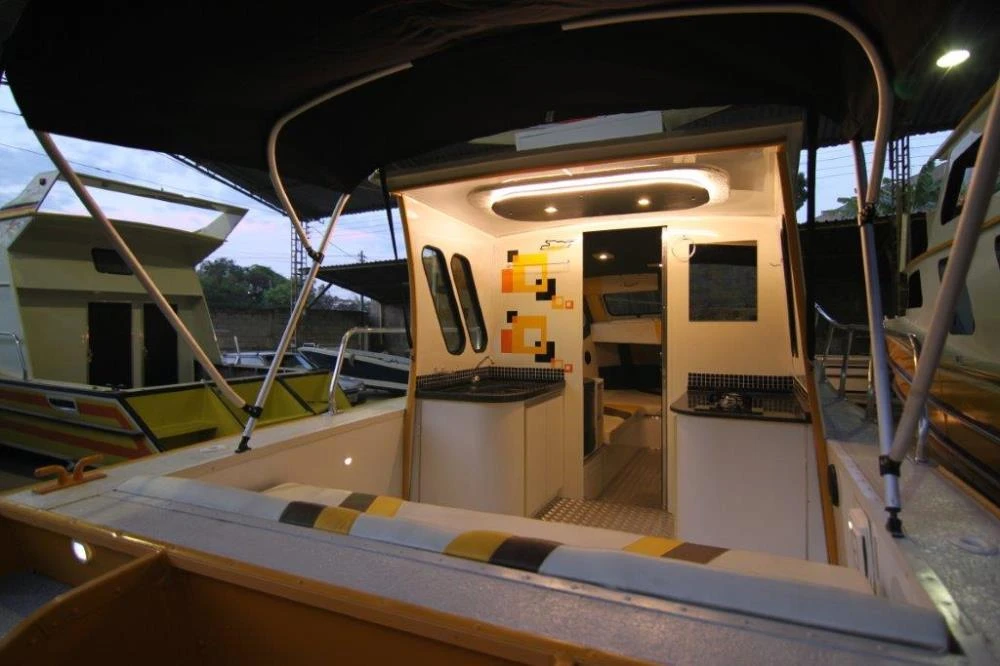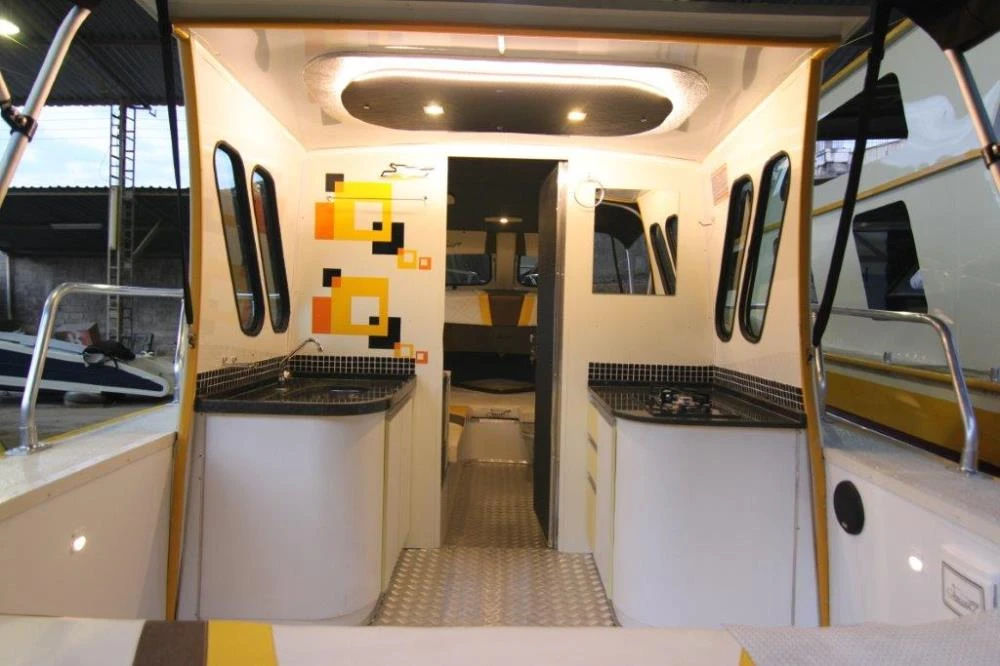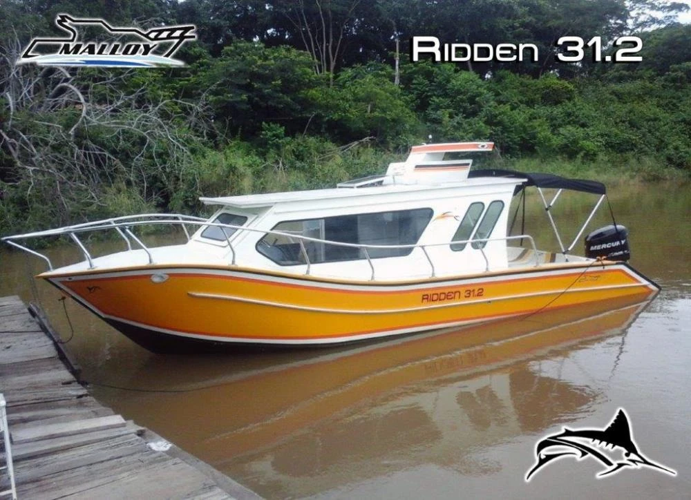 LANCHA CABINADA DE DURALUMÍNIO MALLOY MODELO RIDDEN 31.2 - customizada e sob encomenda - Uma embarcação confortável para navegar em água doce, com dormitório, cozinha, banheiro e solário de popa. FOTOS ILUSTRATIVAS.