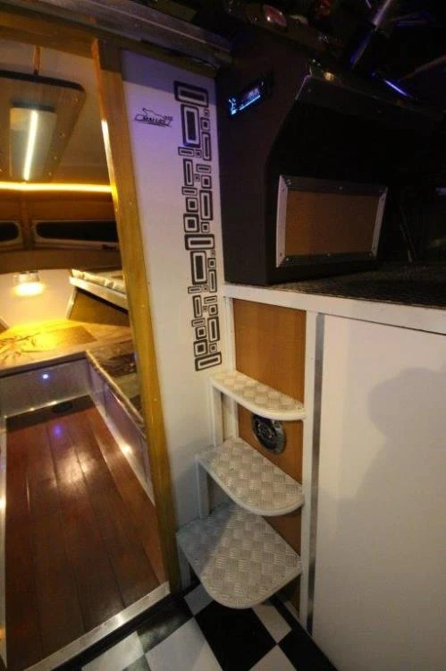 Lancha de duralumínio cabinada Malloy mod. Fly 34,5. Destinada à pesca esportiva em rios, lagos e baías. Possui uma cabine aconchegante, cockpit, dormitórios, cozinha, banheiro e amplo solário de popa. Todas as embarcações Malloy são feitas sob encomenda e podem ser personalizadas conforme as necessidades do cliente. FOTOS ILUSTRATIVAS.