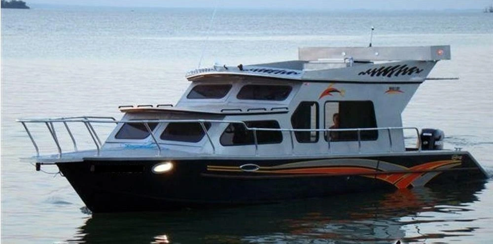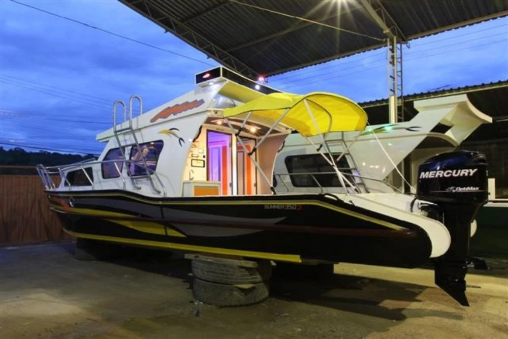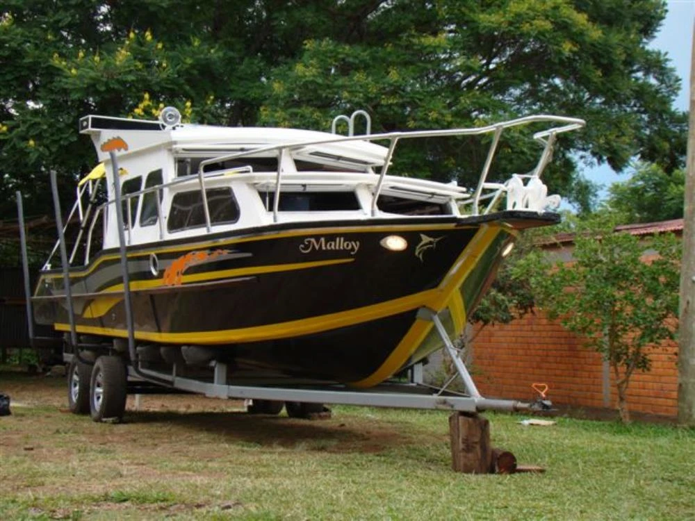 LANCHA DE DURALUMÍNIO MALLOY MOD. SUMMER 350 - Uma lancha cabinada com um estilo simpático e prático. Tem um cockpit confortável, uma cabine aconchegante com dormitório, cozinha e banheiro, além de solário de popa. Acomoda confortavelmente até 04 pessoas para pernoite e 11 durante o dia, além de navegar bem com baixa potência relativa. Oferece opção para motores de popa ou centro-rabeta de 150 até 250 hp. Área de navegação: rios, lagos e baías. Feita sob encomenda e personalizada conforme as necessidades do cliente. Fotos ilustrativas.
