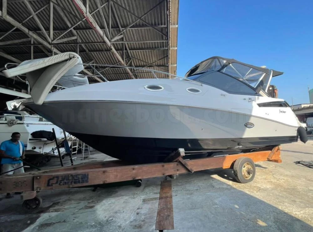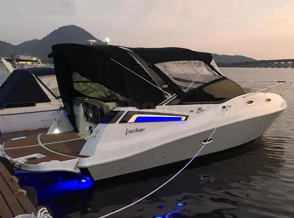 4820: FOCKER 305: 2019, mercruiser 6.2 350hp, gasolina, 230hs de uso, 40 top e 28 cruzeiro, rabeta bravo three, âncora, antena de vhf, (3) baterias, bomba de água doce, (2) bombas de porão, bússola, buzina, capota c/fechamento total, carregador de bateria, carreta de encalhe, cd player, churrasqueira, chuveiro, (10) coletes, defensas, defletor de radar, direção hidráulica, (3) extintores, flap hidráulico, foguetes, geladeira, gps c/plotter, guincho elétrico, inversor, microondas, rádio vhf, sanitário elétrico, sonda, strobolight, tv 20”, tomada de cais, (2) ventiladores... Tel/Zap (13)99706-0395
