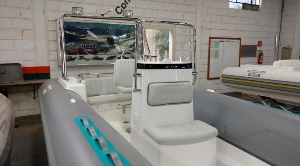 Lancha Flexboat SR-500 LX NOVA com montagem de acordo com as necessidades do cliente. Flutuadores em hypalon com neoprene. Fundo rígido em fibra de vidro. Cores diversas. A embarcação será despachada direto do estaleiro para todo o território nacional. Tratar com Mara pelo WhatsApp 82 99153 3096. FOTOS ILUSTRATIVAS.