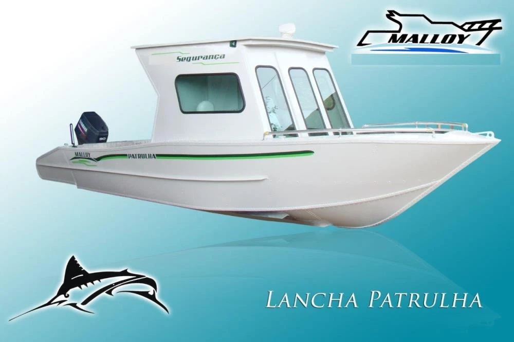 LANCHA MALLOY PATRULHA 22,7 PÉS - Um casco multifuncional em duralumínio para fins de patrulhamento ou pesca esportiva e lazer em rios e lagos. Cabine confortável c/ isolamento térmico, poltronas reclináveis, porta de acesso à proa e popa, luminárias em leds e farol de busca são algumas das características desse barco Malloy. Capacidade: até 2 pernoite / 6 dia. Motorização indicada: popa de 50 à 115 HP. Tratar com Mara pelo WhatsApp 82 99153 3096. FOTOS ILUSTRATIVAS.