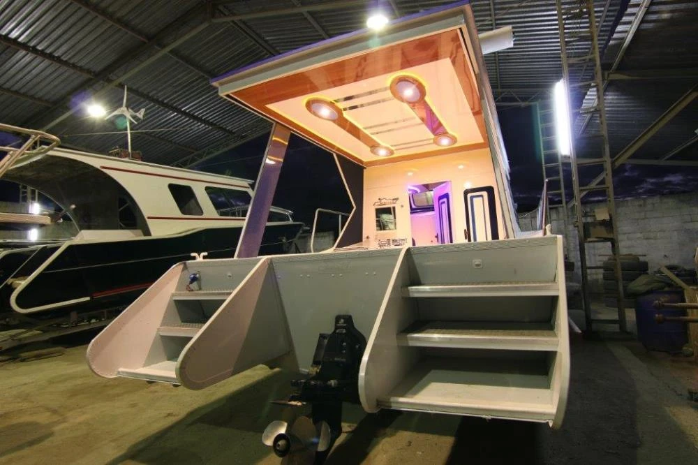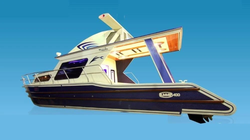 LANCHA DE DURALUMÍNIO MALLOY MOD. SUMMER 400 - A Summer 400 é uma lancha cabinada com um estilo simpático e prático. Tem um cockpit confortável, uma cabine aconchegante com dormitório, cozinha e banheiro, além de solário de popa. Acomoda confortavelmente até 06 pessoas para pernoite e 13 durante o dia, além de navegar bem com baixa potência relativa. Oferece opção para motores de popa ou centro-rabeta. Área de navegação: rios, lagos e baías. Feita sob encomenda e personalizada conforme as necessidades do cliente. Tratar com Mara pelo WhatsApp 82 99153 3096. FOTOS ILUSTRATIVAS.