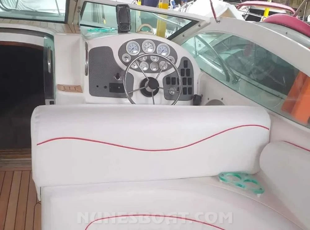 CÓD 4461 PHANTOM 290: estaleiro schaefer yachts, 2003, 2 x mercruiser 1.7 120hp, diesel, 850hs de uso, 28 top e 18 cruzeiro, (2) âncoras, antena de vhf, (3) baterias, bomba de água doce, bomba de porão, bússola, buzina, capota, carreta de encalhe, churrasqueira, chuveiro, (10) coletes, direção hidráulica, (3) extintores, geleira, gps c/plotter, guincho elétrico, rádio vhf, sanitário elétrico, som marinizado jbl, sonda, stroblolight, tv, (4) ventiladores... TEL/ZAP (13)99706-0395