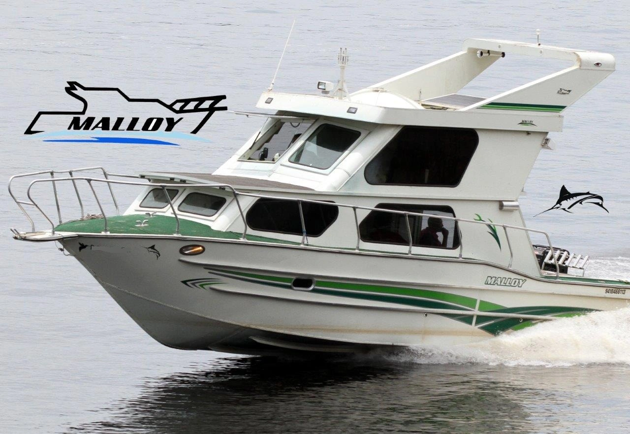 Lancha de duralumínio cabinada Malloy mod. Fly 360. Destinada ao lazer e pesca esportiva em rios, lagos e baías. Possui uma cabine aconchegante, cockpit, dormitórios, cozinha, banheiro e amplo solário de popa. Todas as embarcações Malloy são feitas sob encomenda e personalizadas conforme as necessidades do cliente. Tratar com Mara pelo WhatsApp 82 99153 3096. FOTOS ILUSTRATIVAS.