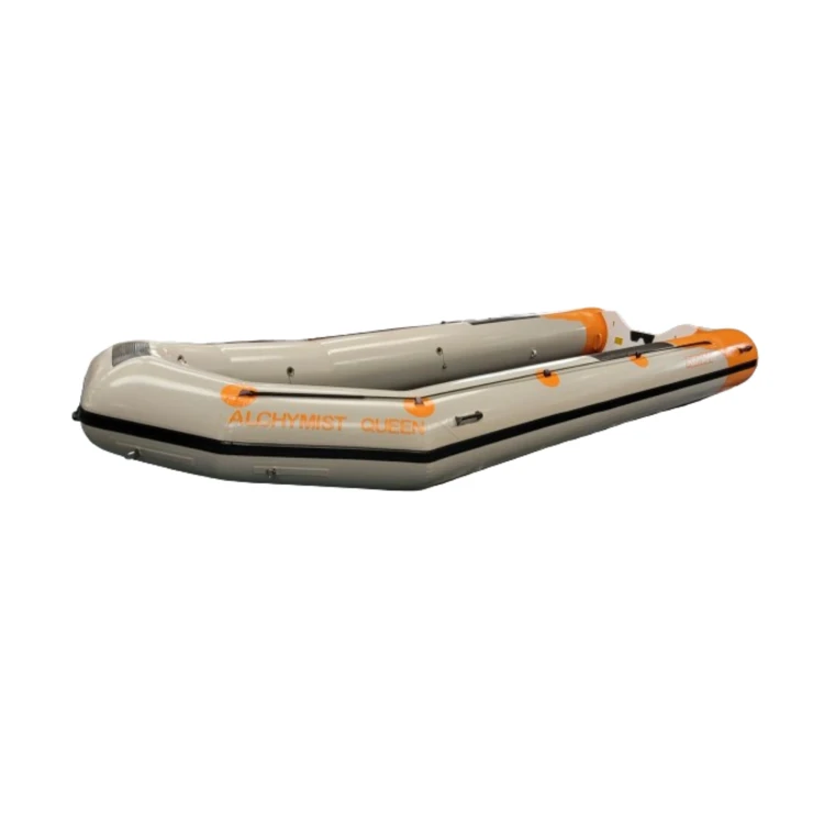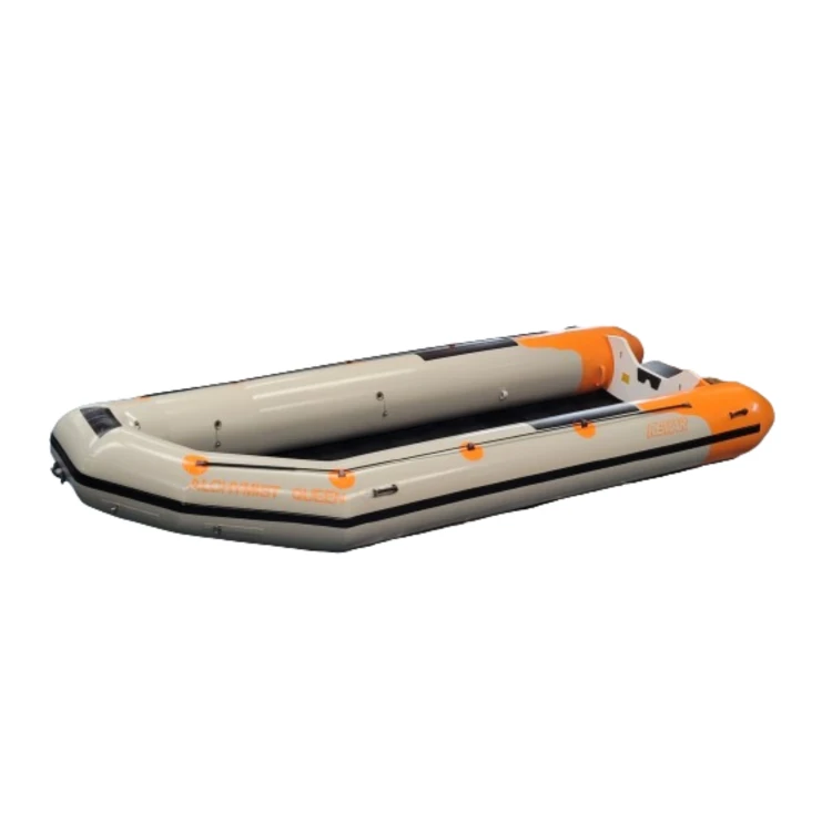 RM 5.00 Tour conta com sistema ripado onde não é necessário a montagem das peças de madeira (estrado) porque elas já são fixadas no piso do barco, dobrando junto com os tubos. Utilizamos PVC náutico reforçado (com tela interna com tecido de fios de poliéster de alta tenacidade) em toda sua construção, oferecendo qualidade, resistência, durabilidade e impermeabilidade. O sistema de fabricação é com solda eletrônica nas emendas. Este sistema dispensa o uso de cola, pois funde uma peça a outra, tornando as partes inseparáveis, oferecendo uma maior durabilidade. O piso é plano (chato) confeccionado com placas de madeira maciça (estrado) e envelopadas com PVC fechados no sistema de solda eletrônica. Os envelopes mantêm uma distância entre as placas proporcionando facilidade e rapidez ao esvaziar e dobrar a embarcação. Indicado para apoio e navegação curta, pois tem bastante arrasto devido ao peso e piso plano. O modelo RM 5.00 Modelo Tour Dobrável sai de fábrica com: 04 compartimentos de ar independentes com uma válvula em cada; 05 alças de transporte, sendo 02 de cada lado da embarcação e 01 na proa do lado externo com 01 d´ring; 04 alças D’ring tipo puxador de bananas reforçados na proa (lado externo) nas laterais abaixo do perfil, sendo 02 de cada lado; 10 D´ring de tecido reforçado costurado com capa de PVC em cima das bananas da popa à proa com corda; 01 alça D’ring (anel com base em tecido) colado na proa na parte interna (para fixação de objetos); Reforço em PVC nas bochechas na mesma cor do bote em ambos lados; Reforço em Vinimanta na cor preto com 24 cm nos tubos embaixo onde arrastam na areia; 02 Pares de antiderrapantes com 0,80 metro cada instalado um de cada lado, onde o cliente escolher e 1 faixa com 0,40 metros no bico da proa até o perfil lateral; Perfil lateral colado ao redor do flutuador para proteção na atracação; 02 suportes para fixar os remos na parte interna do bote; 01 Bujão (dreno) de saída para água com a tampa para o lado interno da embarcação; Popa em fibra de vidro; Tiras de reforço na parte interna e externa nas extremidades do piso; 02 ganchos U em inox instalados na popa de fibra para içamento; Espelho de popa de borracha preta na parte interna para proteção; Espelho de popa de lona de PVC preta na parte externa para proteção; 01 Par de remos; 01 Kit reparos; 01 Bomba de inflar; Declaração de construção (não inclui o laudo do engenheiro naval); Etiqueta de identificação com as especificações do bote; Termo de garantia e manual de instruções; Observação: Não Inclui o envio do laudo de engenheiro naval, podendo ser solicitado mediante a inclusão do custo do mesmo. Itens opcionais para o modelo RM 5.00 Tour dobrável: Reforço extra em qualquer parte do bote de acordo com a necessidade; Par de antiderrapantes extras com 1 metro; Alças de mão extra a serem instaladas onde o cliente desejar; D’ring extra (anel com base em tecido) a ser instalado onde o cliente desejar; Bolso porta objetos com duas aberturas embaixo para saída de água a ser instalada na proa ou local escolhido pelo cliente; Tapete; Nomes (Fonte Arial Rounded– em PVC para colocar nome na embarcação). Especificações Técnicas: Comprimento total: 5.00 m. Comprimento interno: 4.00 m. Largura total: 2.00 m. Largura interna: 0,90 m. Diâmetro dos flutuadores: 0,55 m. Quantidade de câmaras: 04 independentes. Peso sem motor: 110 Kg. Motorização recomendada: 15 à 30 hp. Capacidade de pessoas: até 12 passageiros. Capacidade de carga: 960 Kg. Calado leve: 0,15 m. Calado carregado: 0,30 m. Pontal: 0,75 m. Tamanho do barco embalado: 1,60 C x 0,80 L x 0,80 A (cm). Garantia de 1 ano para uso comercial e militar. De acordo com a política de melhoria continua de nossos produtos, reservamo-nos o direito de deixar de fabricar, substituir, modificar e melhorar o design de qualquer produto em qualquer momento, sem assumir qualquer obrigação de modificar os modelos fornecidos anteriormente. FRETE DE ENVIO FOB, POR CONTA DO CLIENTE, ENTRAR EM CONTATO COM A INFLAVEIS REMAR.