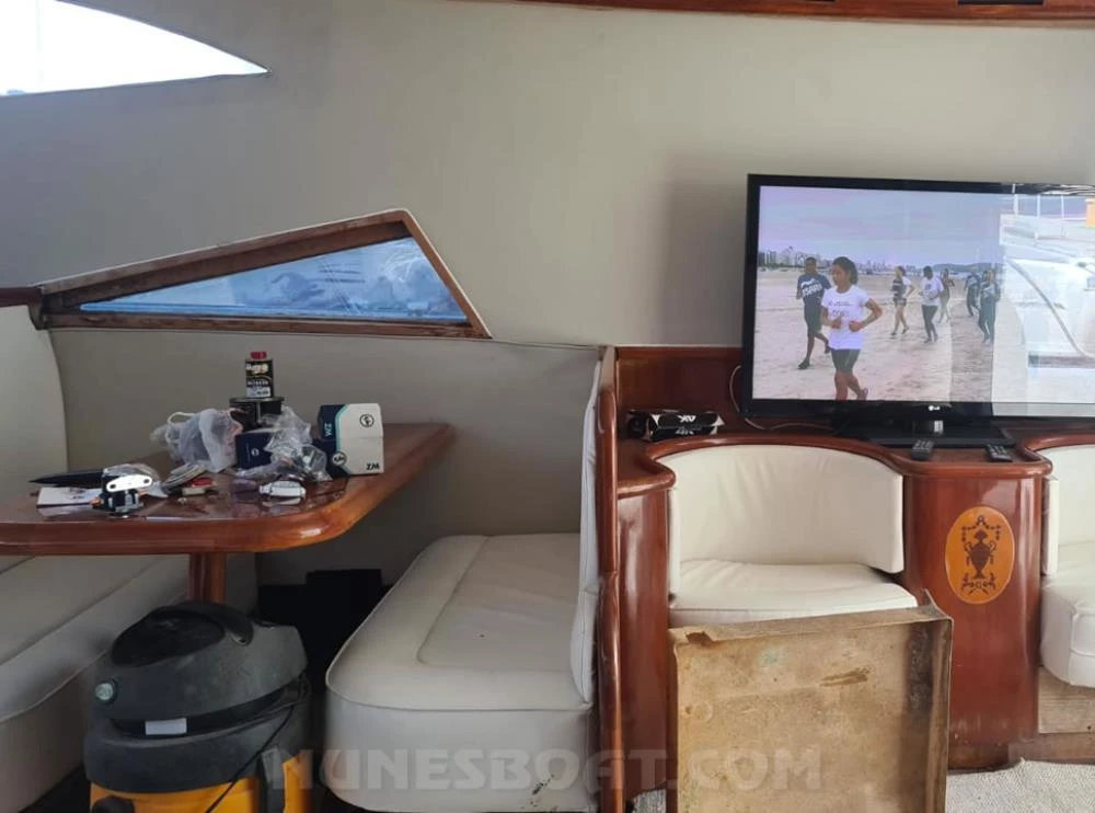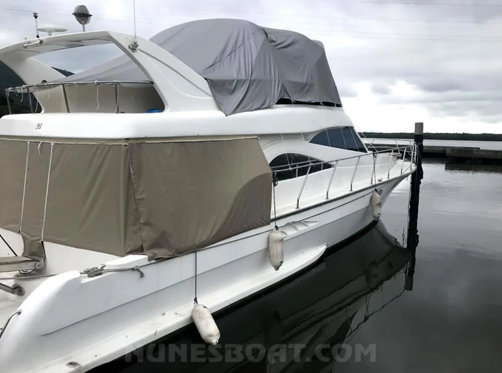 CÓD 8550 CARBRASMAR 55: (50 pés estendida p/55) 2004, 2 x scania 515hp, diesel, 1.050hs de uso, âncora, antena de vhf, (5) ar condicionado, (9) baterias, (2) bomba de água doce, (4) bomba de porão, (2) bússola, buzina, capa, capota c/fechamento total, carregador de bateria, churrasqueira, chuveiro, (16) coletes, direção hidráulica, (4) extintores, farol, fogão elétrico, foguetes, freezer, (2) geladeiras, gerador onan 15kva, gps c/plotter, guincho elétrico, microondas, passarela, rádio vhf, (2) sanitários elétrico, som, strobolight, tv 40”, tomada de cais, ventilador... TEL/ZAP (13)99706-0395