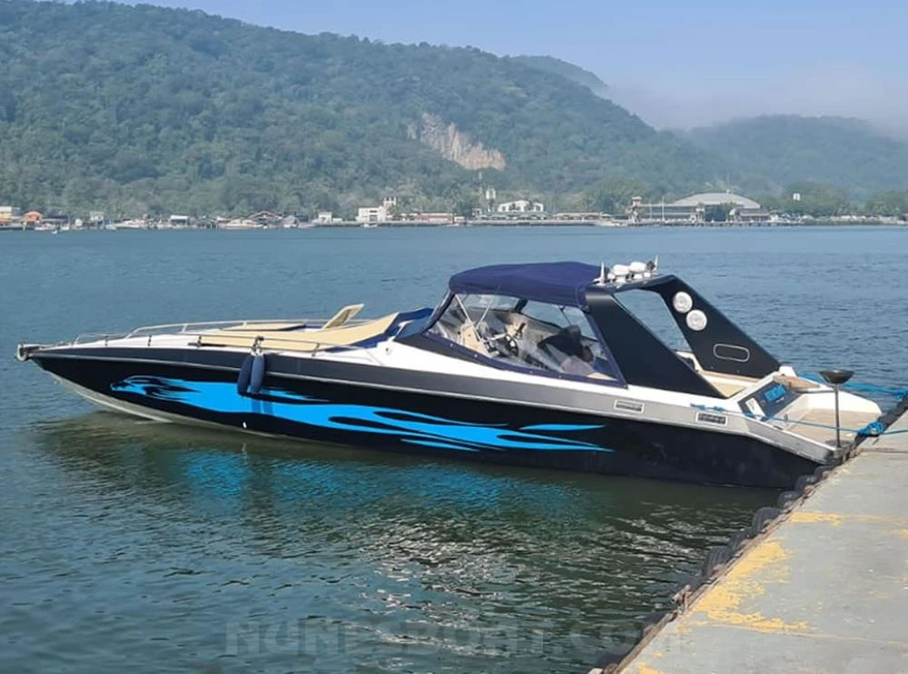 CÓD 6702 MAGNUM 39: 2008, 2 x vp kad42 235hp, diesel, 600hs de uso, 42 top e 30 cruzeiro, rabetas vp 295 dp, âncora, antena de vhf, ar condicionado, (4) baterias, bomba de água doce, (3) bombas de porão, bússola, buzina, capota c/fechamento total, carreta de encalhe, churrasqueira, chuveiro, (11) coletes, direção hidráulica, (2) extintores, farol, flap hidráulico, foguetes, geleira, gps c/plotter, guincho elétrico, inversor 3000w, microondas, rádio vhf no fly, sanitário elétrico, som, strobolight, tv 42”, tomada de cais... TEL/ZAP (13)99706-0395