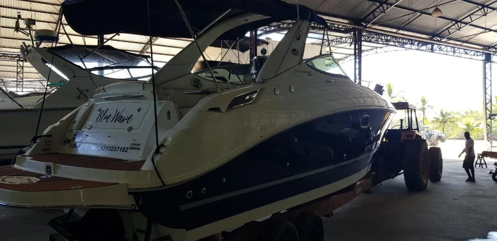 SEA RAY 280 SUNDANCER AMERICANA 210 hrs extensão para 30 pés 2012 Barco com todas as etiquetas de fábrica e com revisão completa à 8 hrs. A embarcação possui: Dois Quartos de casal *Iluminação subaquática *Iluminação toda em LED *Extensão de popa *Kit churrasqueira inox com apoiador Teca *Mesa Teca *Controle de som na Popa, *painel do piloto e no quarto *Som Marinado com amplificador e alto falantes externo e interno no quarto *Extensão de toldo capota e fechamento completo *Carpete em tecido *Aquecedor de agua no banheiro, cozinha, pia externa e chuveirinho de popa *Banco do piloto reclinado no assento, rebatível no encosto e rotativo total e duplo *Banco solário rebatível para cama *Suspensor do tampão do porão do motor com pistão. *Bomba eletrica do esvaziador da caixa de esgoto *Controlador elétrico ProNautic 12.15 P para tomada de cas *Inversor Lucky 3000 wts ondas reais *Banca de bateria zera (3 baterias 180+120+120) *Motor Mercruiser Mercury Big Block MAG 8.2 V8 280 horas. R$ 450.000,00 What 12992182143 Instagram @nautical_blue_sea