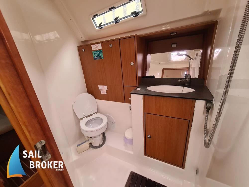 INFORMAÇÕES TÉCNICAS: Modelo: Cruiser 40, Fabricante: Bavaria Yachts (GER), Projeto: Farr Yacht Design, Layout: 03 Cabines e 02 banheiros, Ano: 2013, Tamanho: 40 pés, Boca: 3,96m, Calado: 2,10m, Altura da cabine/banheiro: 1,97m/1,82m, Tanque de água: 360L, Material do casco: Fibra de vidro, Ano do estaiamento: Extensores trocados em 2020 (cabos originais), Pintura de fundo: Janeiro de 2022. MOTORIZAÇÃO: Marca: Volvo Penta, Modelo: D2-60F, Potência: 60 hp, Ano: 2022, Horas de uso: 32.5 h, Transmissão: Rabeta Volvo Penta, Tipo do hélice: Gori folding de 03 pás, Tanque de combustível: 210L, Observação: Motor e rabeta instalados em Abril de 2022. VELAS: 01 Mestra em Dacron, 01 Genoa em Prolan com proteção UV (2021), 01 Storm Jib em Dacron, 01 Gennaker. ELETRÔNICOS: GPS Chart Plotter Garmin Map 7410 de 12” – touchscreen (2018), Piloto automático Garmin (display 2018), Display Tridata Garmin: Wind, depth e speed (2018), Rádio VHF Garmin (2022), AIS 800 Garmin, Epirbi. ELÉTRICA: 02 Baterias de serviço Moura de 150Ah, 01 Bateria de partida Moura de 80Ah, 02 Paineis solares de 100W, Controlador de carga MPPT, Inversor Power DC12V AC220V 4000W, Geladeira 12V, Micro-ondas, Ventiladores, 02 WC elétricos, 02 Bombas de água pressurizada (2022), Aparelho de som Garmin Fusion com bluetooth, 04 Autofalantes, Luzes em LED. ACESSÓRIOS: Bimini (2022), Dog house e lazy jack (2017), Enrolador de genoa Furlex, Burro hidráulico, 02 Bússola, Fogão de 02 bocas com forno, Bote de apoio inflável Zefir de 2,30m (2020), Motor de popa Mercury de 5hp (2020), Suporte de motor de popa, Plataforma de popa articulável, 02 Rodas de leme, 04 Catracas Lewmar com self tailing, Escada de acesso na popa, Vigias (algumas foram trocadas em Setembro de 2022). ATRACAÇÃO/FUNDEIO: Guincho elétrico Quick, Âncora Bruce de 25Kg em aço inox, 50m de corrente, Âncora reserva de 15Kg com 30m de corrente, Espias, 03 Defensas F3, 02 Defensas A2. DOCUMENTAÇÃO: Área de navegação: Mar aberto, Capacidade máxima de passageiros: 1+9, Situação: Em dia, Capitania: Rio de Janeiro. Acesse o site para maiores informações e fotos: www.sailbroker.com.br - 21 98783-1177 Gustavo Campos / Willian Coutinho 21 99880-6870