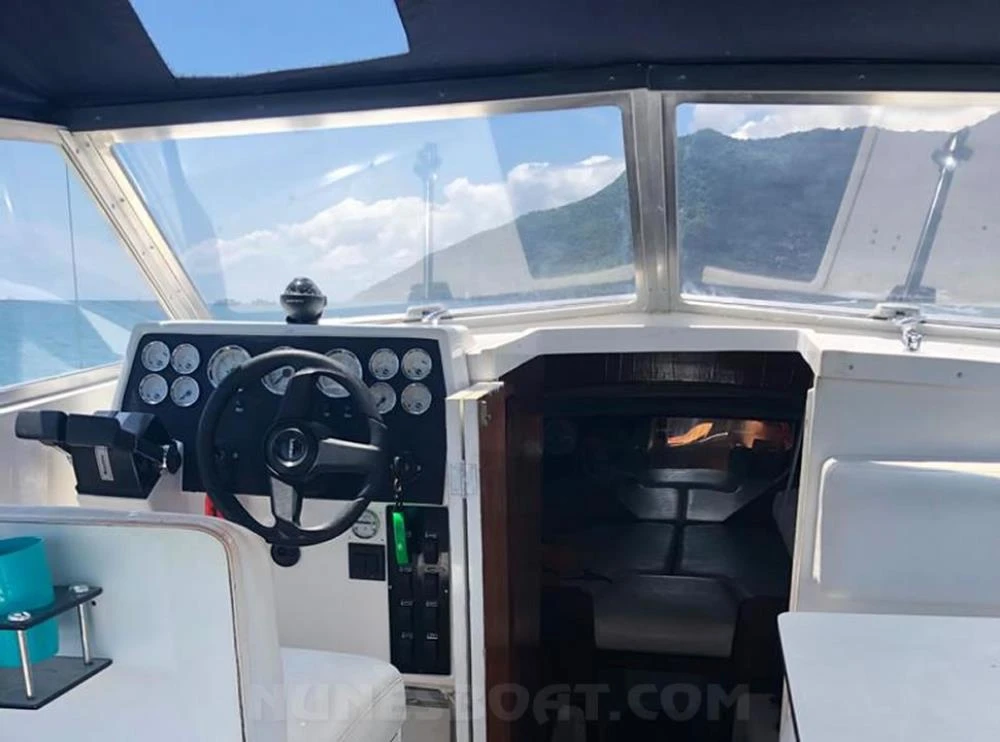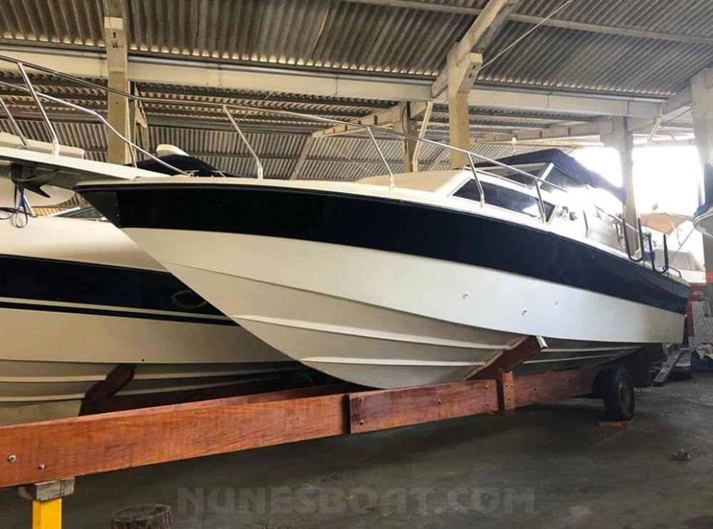 CÓD 4450 CARBRASMAR 29: 1988, 2 x mwm sprint 170hp, diesel, 38hs de uso, 30 top e 18 cruzeiro, rabetas vp 280, âncora, antena de vhf, (3) baterias, bomba de água doce, (3) bombas de porão, bússola, buzina, capota, carregador de encalhe, chuveiro, (10) coletes, direção hidráulica, extintor, flap hidráulico, geladeira, guincho elétrico, rádio vhf, sanitário comum, som, strobolight, teca eva, turco... (13)99706-0395 Tel/Zap