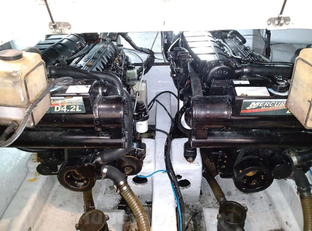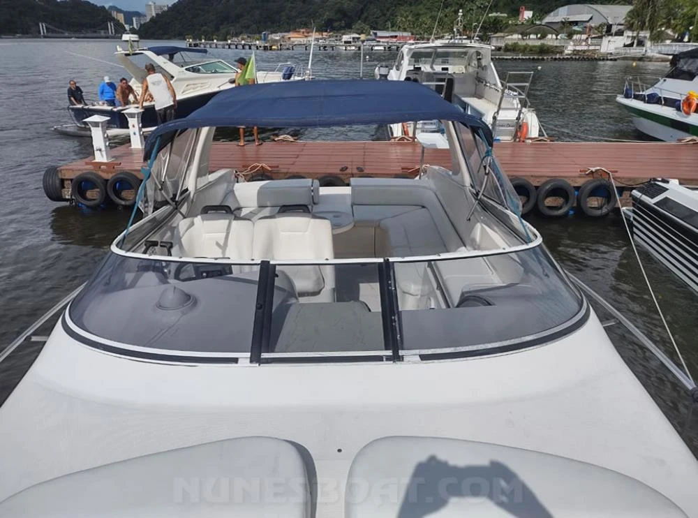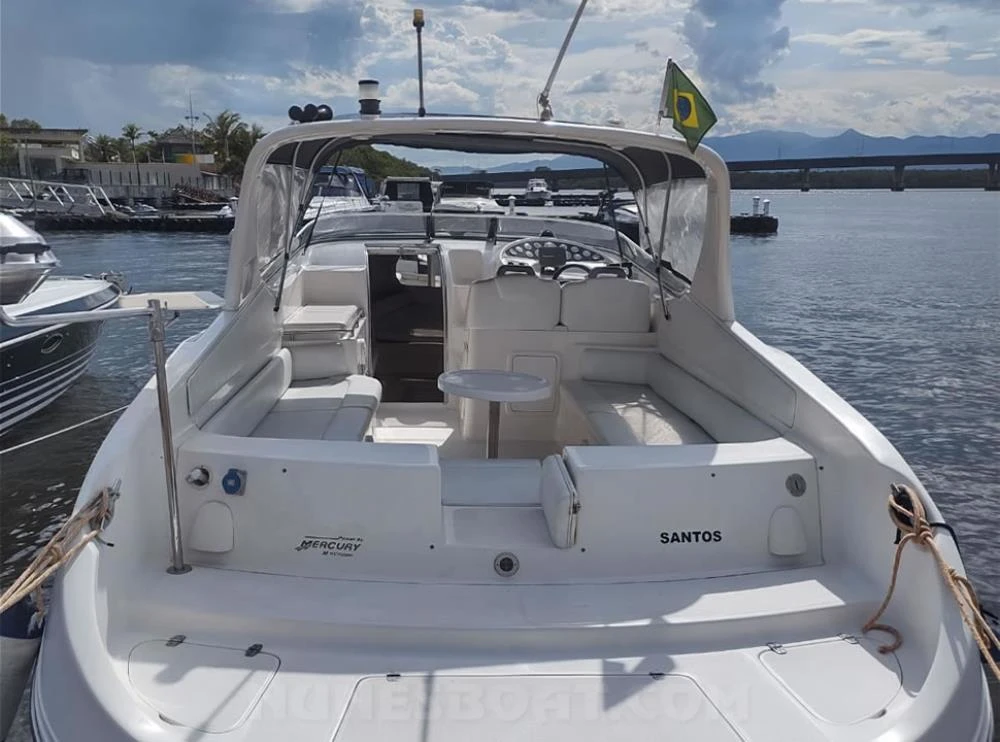 CÓD 6381 RUNNER 380: 2002, 2 x mercruiser d4.2l 220hp, diesel, 36 top e 24 cruzeiro, âncora, (3) baterias, bomba de água doce, (3) bombas de porão, bússola, buzina, capota, carreta de encalhe, churrasqueira, chuveiro, (11) coletes, (4) defensas, direção hidráulica, (2) extintores, flap hidráulico, geleira, gps, guincho elétrico, micro-ondas, rádio vhf, sanitário elétrico, strobolight, (4) ventiladores... F/c. Nunes (13)99706-0395 Tel/Zap
