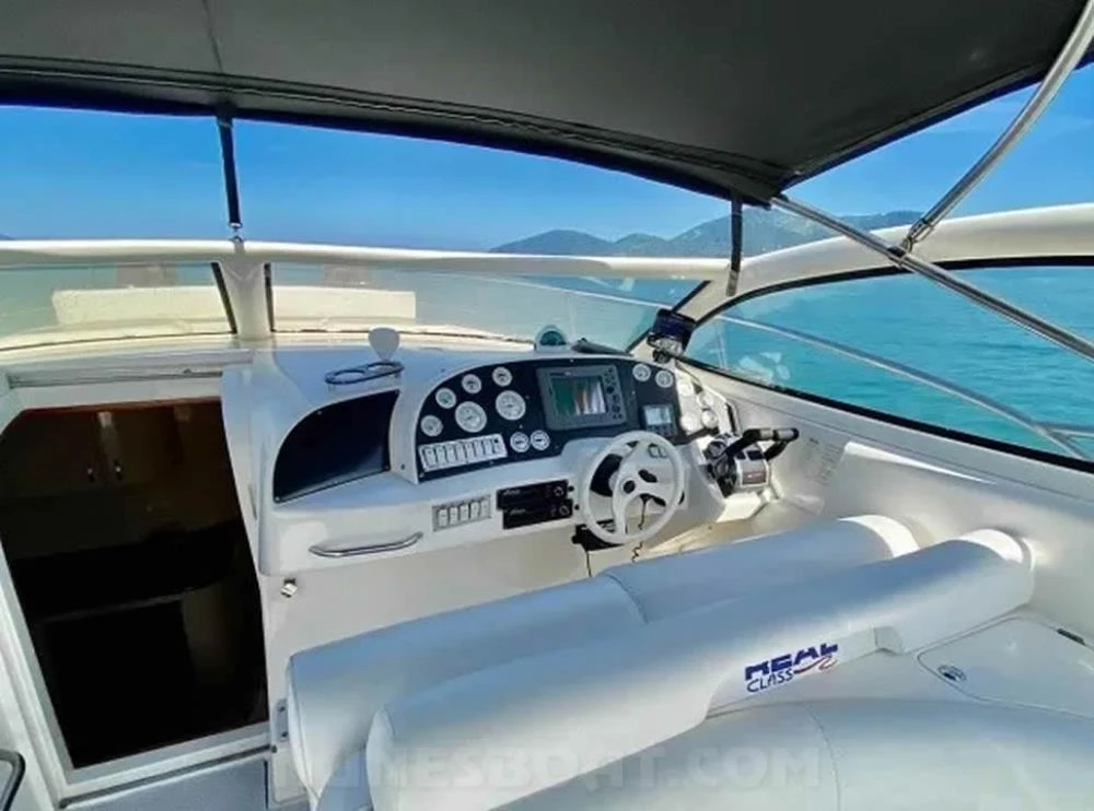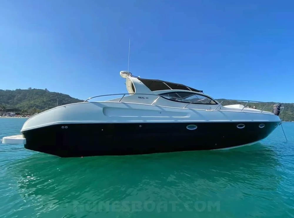 CÓD 7700 REAL CLASS 45: 2008, 2 x mercruiser d-tronic 320hp, diesel, rabetas mercruiser, 33hs de uso, 28 top e 18 cruzeiro, âncora, antena de vhf e tv, ar, (6) baterias, boiler, bomba de água doce, (3) bombas de porão, bússola, buzina, capota rígida hd, carregador de bateria, carreta de encalhe, churrasqueira, chuveiro de popa, (12) coletes, cristaleira e adega de vinho, defensas, defletor de radar, direção hidráulica, (3) extintores, faróis robotizado, flaps hidráulicos, geladeira, gerador onan, gps, guincho elétrico, inversor, luz subaquática, microondas, rádio vhf, sanitário elétrico, solarium de proa e popa, som, sonda, strobolight, tapete emborrachado, teca, tv, tomada de cais... F/c. Nunes (13)99706-0395 Tel/Zap