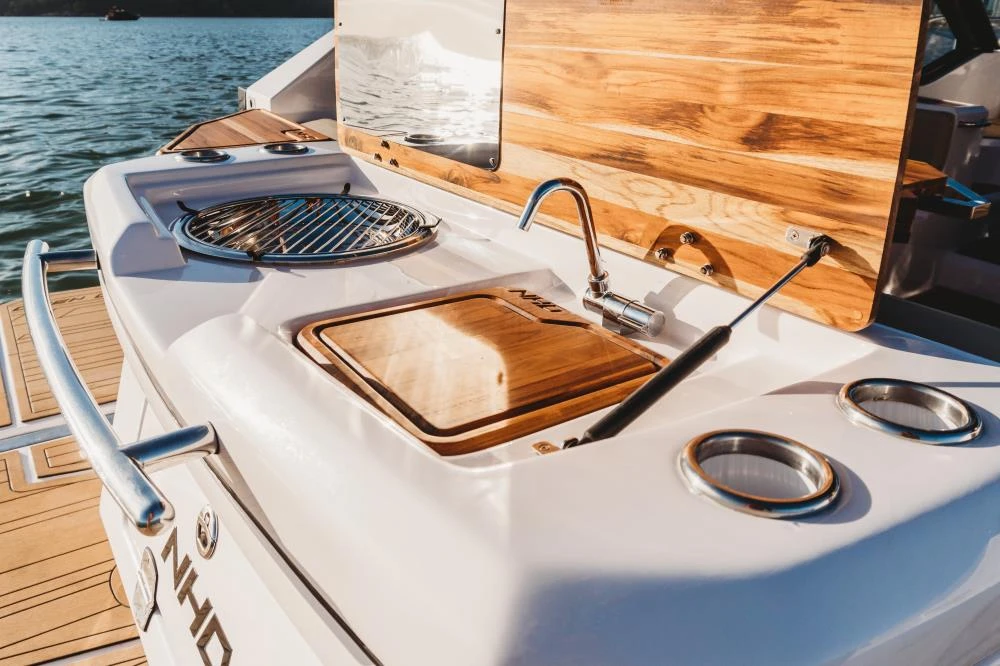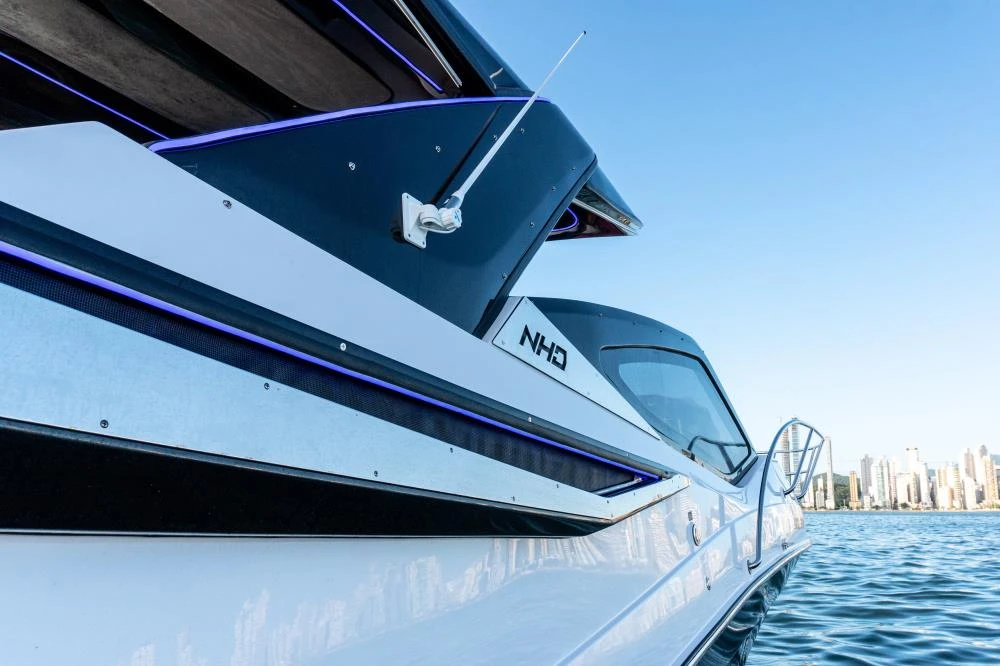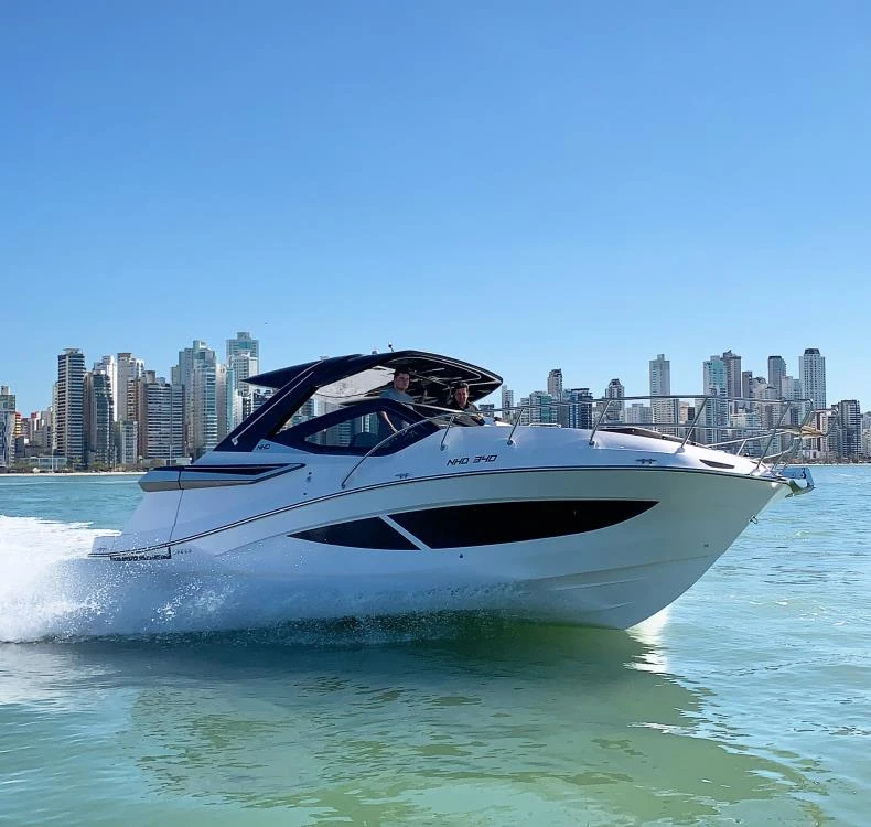 VISTAMAR NÁUTICA - Marina Aratu LANCHAS NOVAS E SEMINOVAS A ligação entre você e seu sonho. VISTAMAR NÁUTICA com sua nova Representação NHD BOATS. DESIGN, INOVAÇÃO, CONFORTO E SEGURANÇA A NHD340 conta com uma proa aberta, cabine com cama de proa e meia nau, cockpit amplo e espaçoso para uma excelente interação entre os passageiros, nichos para armazenamento de equipamentos, mantimentos e bebidas, plataforma de popa com Double Open Deck e um espaço gourmet de série. A embarcação também possui um teto rígido e um conceito novo para a categoria de iluminação diurna, o daylight. São leds que compõe o design da embarcação sendo agora possível identificar uma NHD tanto de dia quanto te noite. O design é esportivo e a proa é larga aumentando ainda mais a capacidade de passageiros a bordo. CARACTERÍSTICAS TÉCNICAS: Comprimento total: 10,2m Boca máxima: 3,25m (open deck fechado) Peso leve: 3.400kg Calado: 55cm Altura de cabine: 1,9m Altura wc: 1,80m Passageiros: 15+1 dia / 05 noite Categoria: cabinado Tanque de água doce: 200l Tanque de combustível: 400l em alumínio Comprimento plataforma: 2,10m Motorização parelha: 200 x 300hp CARACTERÍSTICAS GERAIS: Acabamento do costado em pvc e inox Abastecimento externo Sistema marcador de combustível Blower 12 v Bomba de água doce Caixa de âncora Caixa de disjuntores Chave geral Chuveiro de popa Compartimento para bagagem sob assento lateral Compartimento para cabos de âncora Cunhos em inox Escada de popa telescópica embutida de 4 degraus Estofamento em curvim anti-mofo Guarda mancebo em inox Iluminação em led no teto rígido Luz de cortesia em led Luz de navegação de proa Luz da targa em led Olhal de proa e popa em inox Para-brisa frontal em alumínio fumê e laterais com fibra Pega-mão em aço inox Pré-disposição para alto falantes na targa Suporte de bateria Suporte para guincho Suporte para comando do motor top Tampa de acesso a casa de máquinas com mola à gás Targa em fibra de vidro Banco duplo de pilotagem com assento articulado Duas bombas de porão Local para bóia, defensa e caixa térmica Sistema pioneiro open deck CARACTERÍSTICAS DO ESPAÇO GOURMET: Espaço gourmet com cuba de fibra Tábua de corte em teca Luz de led inferior do gourmet Chapa de proteção anti-chamas Local para armazenagem com tampa Torneira dobrável Abertura do tampo em teca com mola à gás CARACTERÍSTICAS DO BANHEIRO: Luz do banheiro em led Banheiro com pé direito de 1,8m Pia do banheiro com torneira em inox Vaso sanitário elétrico Nicho porta toalhas Sistema hidráulico do banheiro Teto em fibra de vidro Papeleira e suporte toalhas em inox Espelho com bisote Tampo da pia em corian Cuba da pia em porcelana CARACTERÍSTICAS DO PAINEL: Painel com design moderno com espaço para bússola, Gps, Rádio Vhf e instrumentos Interruptores para buzina, luz de targa, fundeio, luz de navegação, 02 bombas, reserva e bomba de água doce Tampa de inspeção do painel Tomada 12v Entrada Usb Acionamento do chuveiro de popa Alarme de inundação Painel em fibra de vidro com placas em inox Porta objetos em acrílico fumê CARACTERÍSTICAS DO CABINE: Cabine com pé direito de 1,9m Cama de proa casal com 2m de comprimento Cama meia nau para casal Cozinha com espaço com disposição para Microondas, pia, geladeira e Nichos porta objetos. Pia com torneira em inox Iluminação em led Vidros e vigias Acabamento estofado nas laterais e teto Escada de acesso a cabine em inox A partir de R$1.008.490,00 com 2x Motor Mercruiser 4.5 L 250 HP, Bravo 3, Mecânico (Básica e sem opcionais) Frete FOB Parcelamento com 30% à vista e saldo em até 60 vezes com excelente taxa de juros. Aceitamos como forma de pagamento embarcações menores e automóveis. VENHA NOS VISITAR E CONHECER ESTA E OUTRAS EMBARCAÇÕES NOVAS E SEMI-NOVAS. Agende seu test-drive. VISTAMAR NÁUTICA ABERTO DE SEGUNDA A SÁBADO DAS 09H ÀS 17H E AOS DOMINGOS E FERIADOS DAS 08H ÀS 13H. CONTATOS E REDES SOCIAS: 071-99954-4411 (OI) (WHATSAPP) 071-98888-4411 (VIVO) (WHATSAPP) E-MAIL: vistamarnautica@hotmail.com INSTAGRAM: @vistamarnauticaoficial FACEBOOK: Vistamar Náutica SITE: www.vistamarnautica.com.br