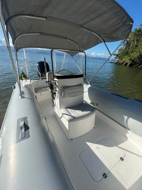 Flexboat Sr 500 + Mercury Ct 100 4t! Conjunto 2020 apenas 100 hrs de uso recém revisado! Segundo dono Carreta galvanizada korg Torre para esportes aquáticos Luzes de navegação em led Marcador de combustível Hélice inox Capota bailly Capa de cobertura bailly Âncora galvanizada com cabo Cabos de amarração 6 Coletes 2 defensas Bateria moura 100 amperes Bomba de água doce Bomba de porão com automático Bote extremamente novo! Motor 4 tempos muito silencioso e econômico 12/15 lts hora!
