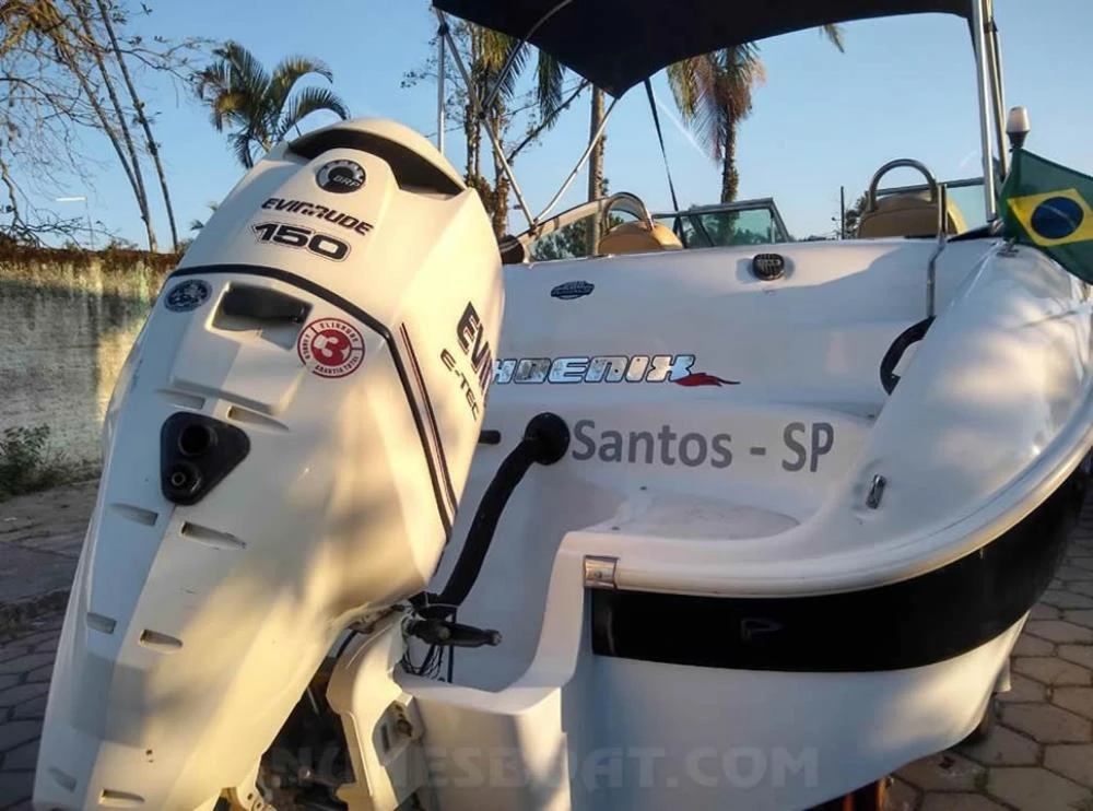 CÓD 1230 PHOENIX 23.5: platinum, 2019, evinrude 150hp ano 2012, gasolina, 135hs de uso, 37 top e 25 cruzeiro, (2) âncoras, antena de vhf, bateria, bomba de água doce, bomba de porão, bússola, buzina, capa, capota, carreta de encalhe, churrasqueira, chuveiro, (10) coletes, extintor, geleira, gps, rádio vhf, som, strobolight, teca eva, tomada de cais... F/c. Nunes (13)99706-0395 Tel/Zap