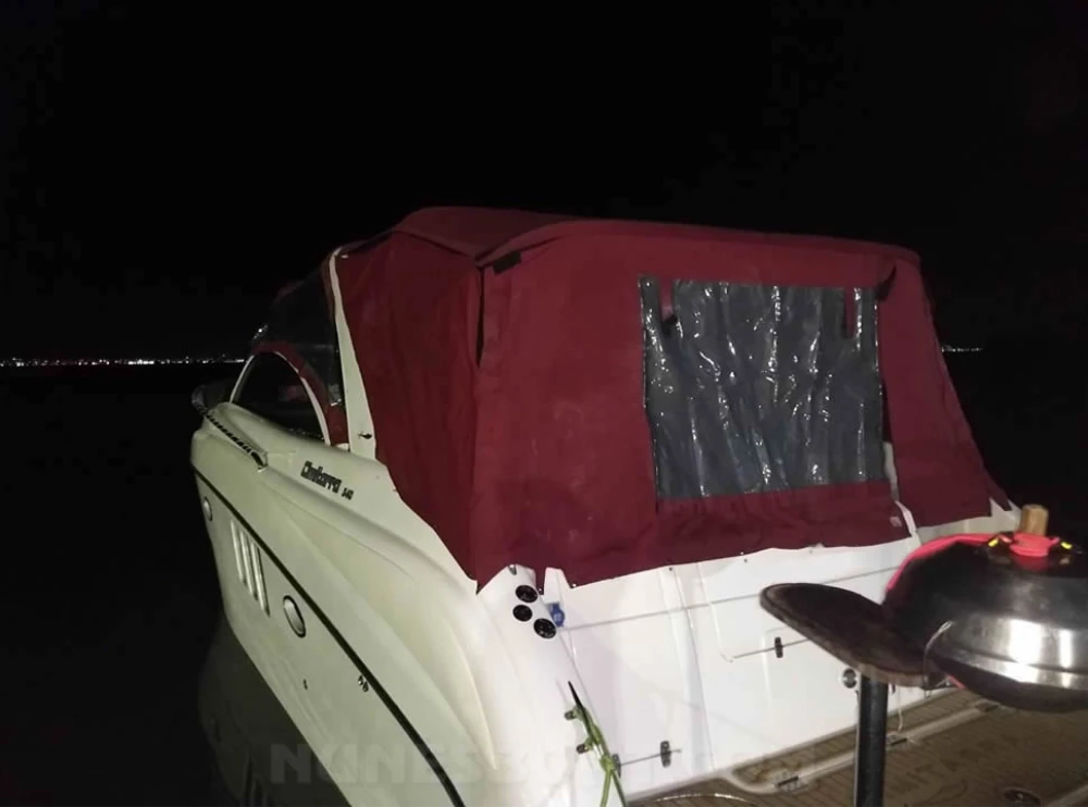 CÓD 5871 CIMITARRA 340: 2010, 2 x vp d3 200hp, diesel, 350hs de uso, 37 top e 25 cruzeiro, rabetas vp 295 dp, âncora, antena de vhf, (4) baterias, bomba de água doce, (3) bombas de porão, bússola, buzina, capota c/fechamento total, carreta de encalhe, churrasqueira, chuveiro, coletes, direção hidráulica, (2) extintores, farol, geleira, gps c/plotter, guincho elétrico, inversor, micro-ondas, rádio vhf, sanitário elétrico, som, sonda, strobolight, tomada de cais... F/c. Nunes (13)99706-0395 Tel/Zap