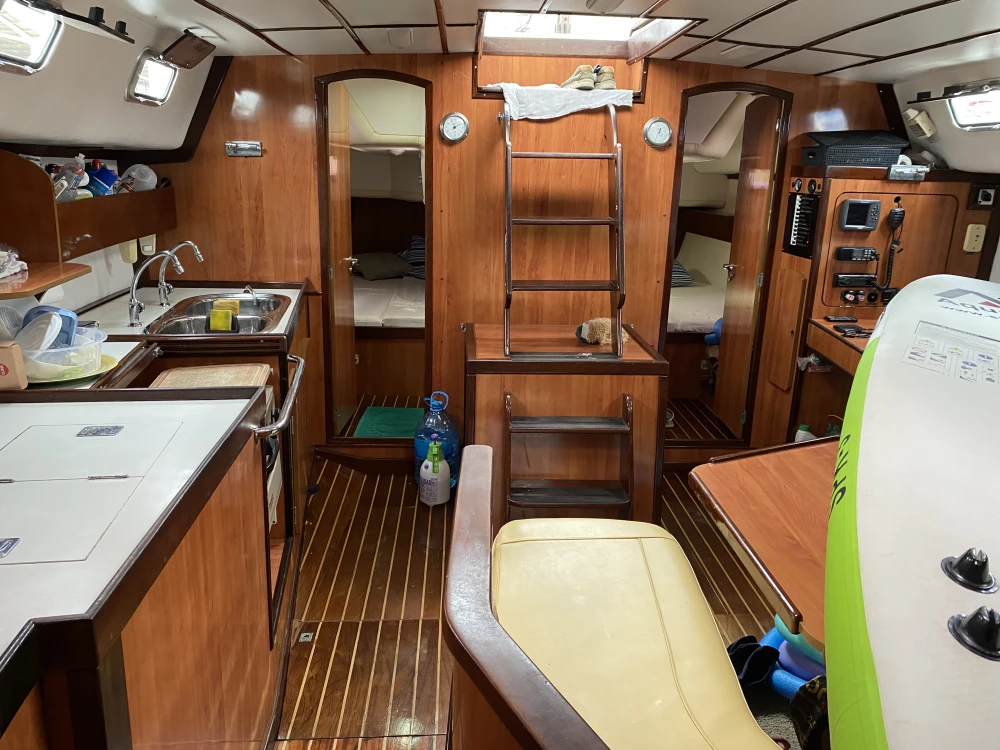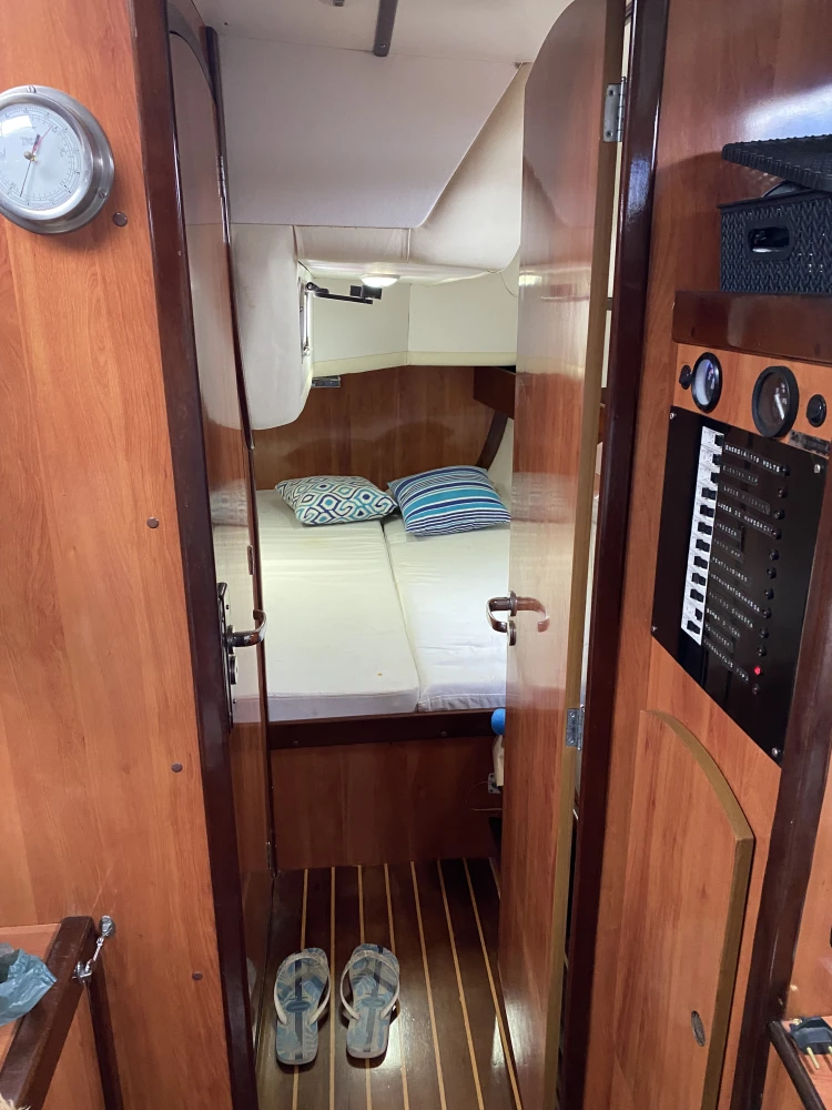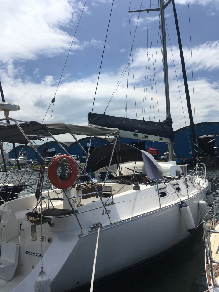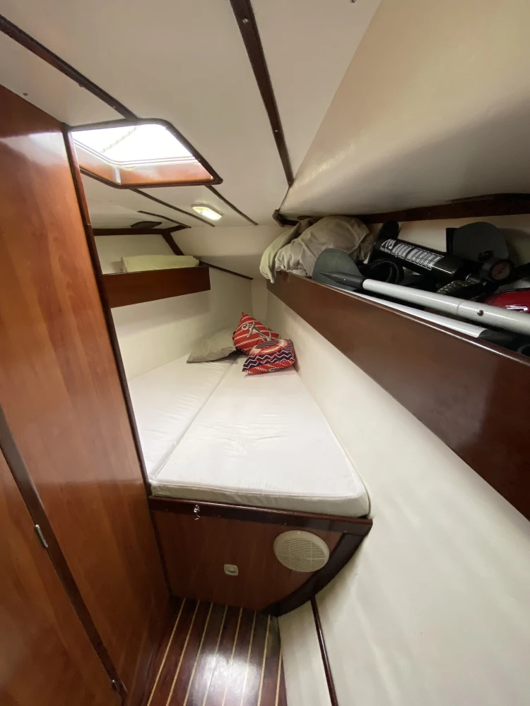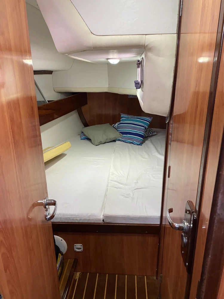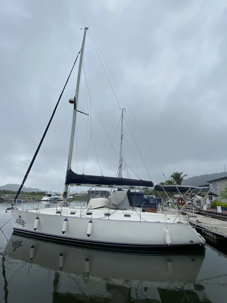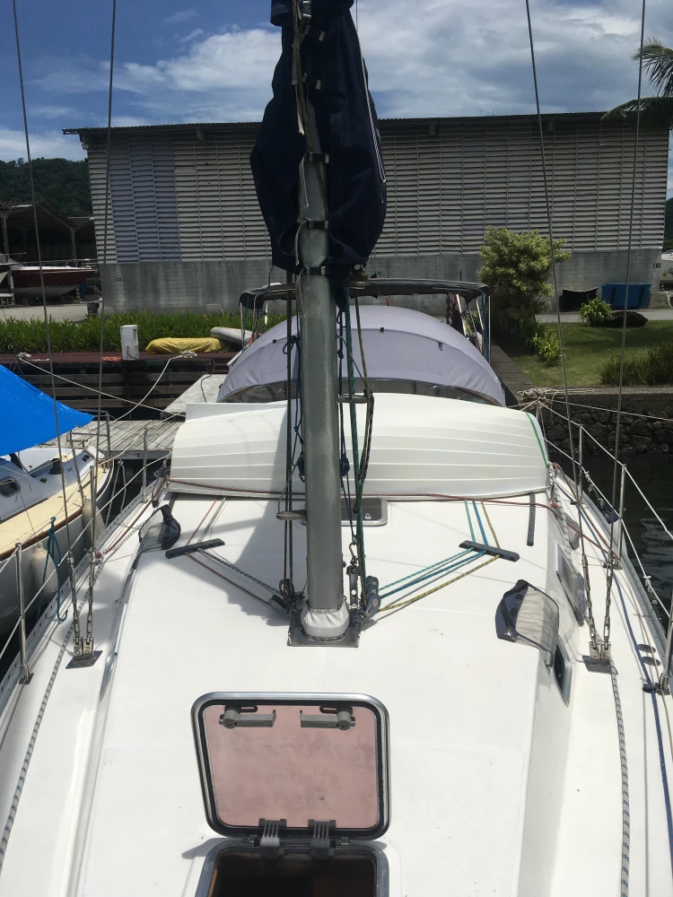 Veleiro MJ38-2007 3 cabines 2 banheiros Geladeira 12v Fogão c/forno 2 pias 2 ventiladores 2 ar condicionado 110w Guincho elétrico 30 metros corrente 1 genoa 1 mestra 1 genoa reserva 1 bote de fibra 1 rádio vhf Motor Yanmar 40hp GPS 4 baterias 70 Carregador de bateria Boiler Âncora reserva Bússola Chartplotter Painel solar Churrasqueira Chuveirinho na popa c água quente e fria