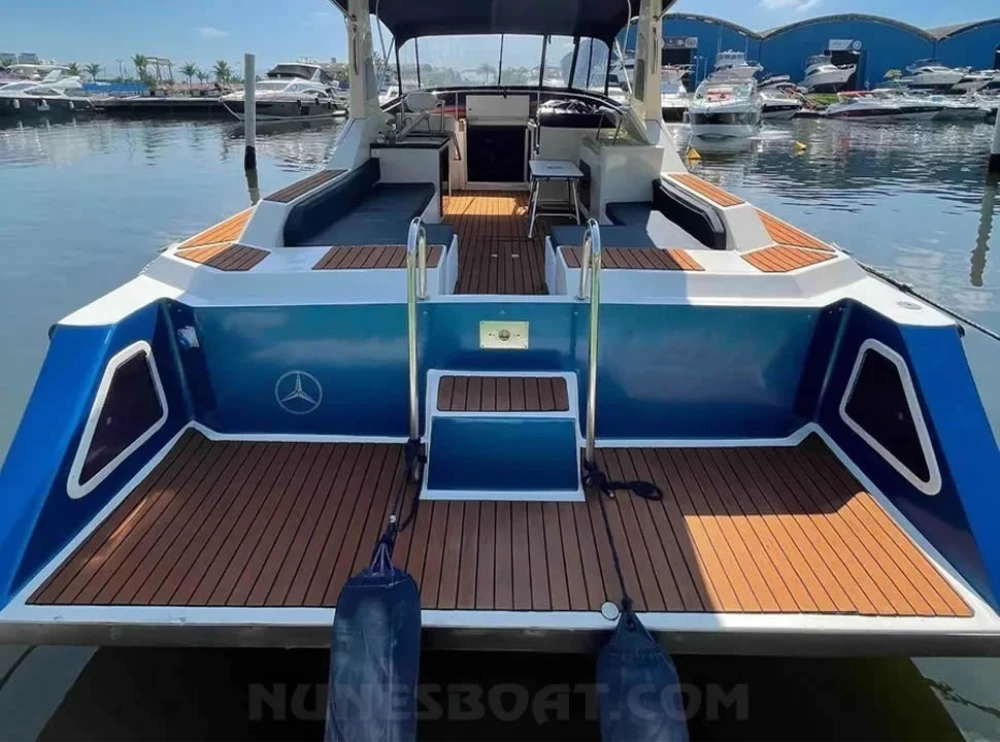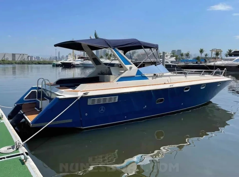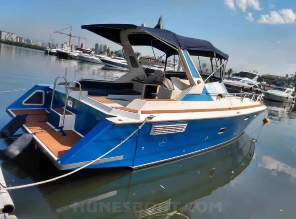 CÓD 5850 DIAMAR 34: 1986, 2 x mb 250hp ano 1992, diesel, 700hs de uso, 32 top e 20 cruzeiro, pé de galinha, âncora, antena de vhf, (2) baterias, bomba de água doce, (2) bombas de porão, bússola, buzina, capota c/fechamento total, carregador de bateria, carreta de encalhe, cooler no deck, churrasqueira, (2) chuveiros/ducha, (11) coletes, (4) defensas, (4) extintor, flap hidráulico, geladeira, gps c/plotter, guincho elétrico, inversor, micro-ondas, rádio vhf, sanitário elétrico, som, strobolight, teca eva, tv 40”, tomada de cais, ventilador... F/c. Nunes (13)99706-0395