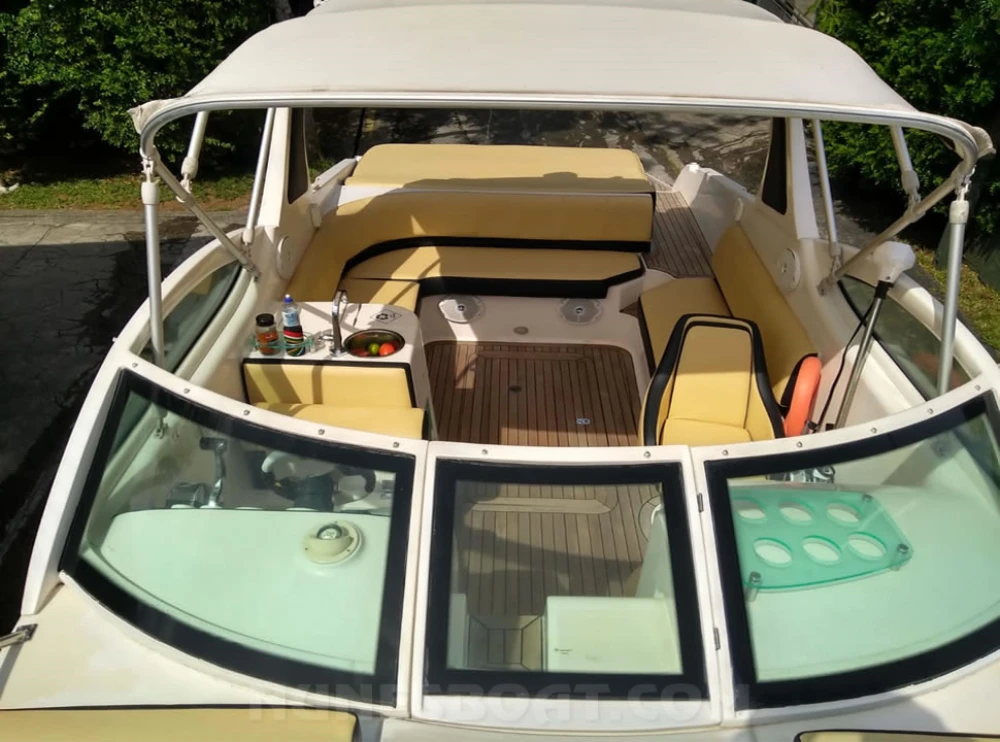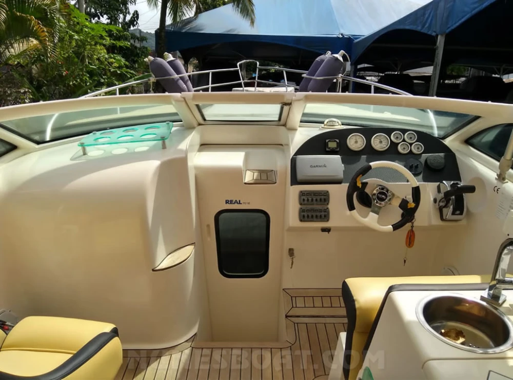 CÓD 4491 REAL CLASS 300: 2013, mercruiser 377mag v8 320hp, gasolina, 490hs de uso, 40 top e 28 cruzeiro, (2) âncora, antena de vhf, (2) baterias, bomba de água doce, (3) bombas de porão, bote inflável, bússola, buzina, capota c/fechamento total, carreta de encalhe 2021, churrasqueira, chuveiro, (13) coletes, (2) extintores, (4) defensas, farol, geleira, gps c/plotter, guincho elétrico, inversor, luz subáquatica, kit de salvatagem completo, rádio vhf, pia, sanitário elétrico, som c/2 modulos 1 subwoofer e 18 altofalantes jbl marinizados, strobolight, teka original, tv 20”, ventilador... ... F/c. Nunes (13)99706-0395