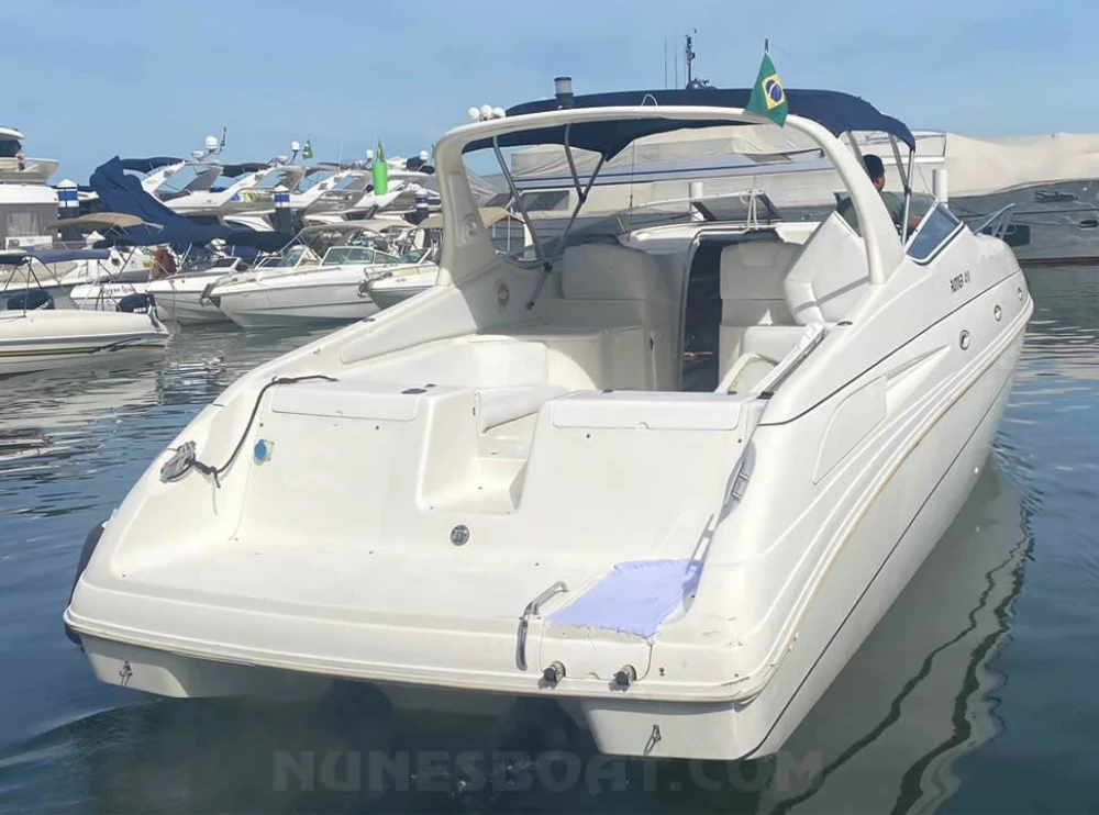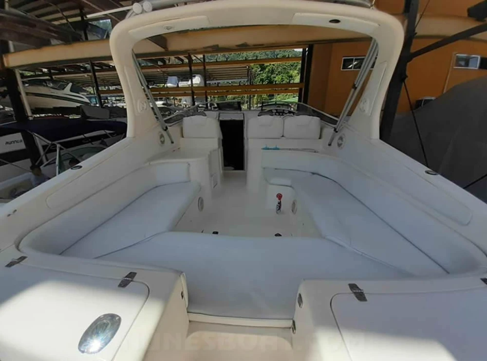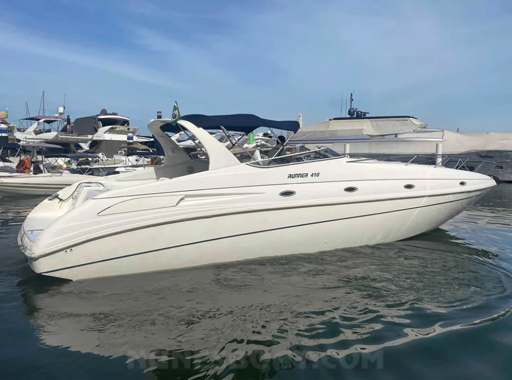 CÓD 7101 RUNNER 410: 2007, 2 x mercruiser 250hp, diesel, 38 top e 26 cruzeiro, âncora, antena de vhf, ar condicionado, baterias, bomba de água doce, bombas de porão, bússola, buzina, capota, carreta de encalhe, chuveiro, coletes, defensas, direção hidráulica, extintores, farol, foguetes, geladeira, gerador kohler 5kva, gps, guincho elétrico, rádio vhf, sanitário elétrico, som, strobolight, tv, tomada de cais... F/c. Nunes (13)99706-0395