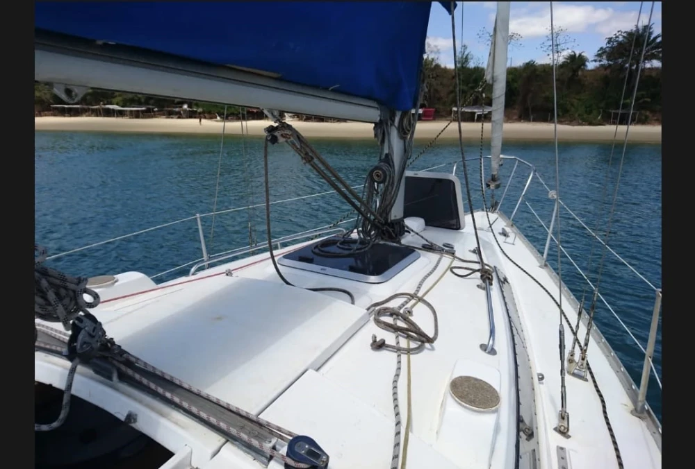 Veleiro FAST 303 - versão Cruzeiro Construtor: Mariner Boats, Projeto: Ron Holand, ano 1986 Motorização: YANMAR Diesel 2013, 30 HP, com todas as revisões com o fornecedor do motor. Comprimento: 30 pés, Boca: 3,2m, Calado: 1,70m - Quilha de chumbo, Pé direito: 1,80m; Capacidade: 9 passageiros e um tripulante; Mastreação revisada e trocado todos os estais em ótimo estado de conservação; Velas: uma mestra em dacron e uma genoa em dacron (nº 3), pau de spinnaker, enrolador de genoa Nautos; profundimetro, radio VHF, rádio AM/FM e caixas de som. Bombas de porão elétricas e de água doce (pressurizada água no banheiro na pia da cozinha), pia de cozinha e mesas de centro e de navegação; Estofamento interno em regular estado de conservação, com revestimento em tecido emborrachado náutico; Tanques de água: dois tanques de 75 L cada; Ancoras: 1 Bruce 10Kg na proa + 40m de corrente. Carrinhos, trilhos, 7 catracas, 4 Harken 32, 3 lewmar 28 Toda instalação elétrica e luzes funcionando Vaso sanitário com descarga elétrica Chuveiro de água doce no sanitário Diversas defensas Pintura de fundo(venenosa de julho/23); não há osmose no casco. Documentos em dia e prontos para transferência. Encontra-se próximo a SALVADOR/BA.