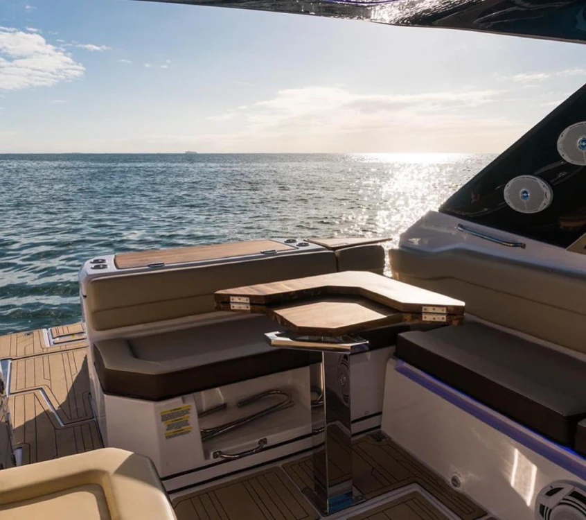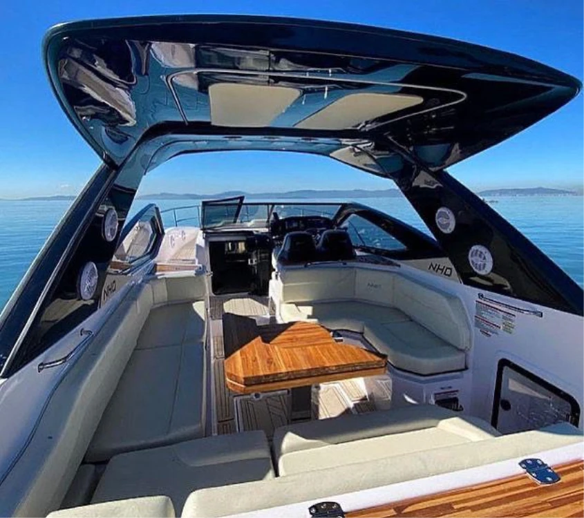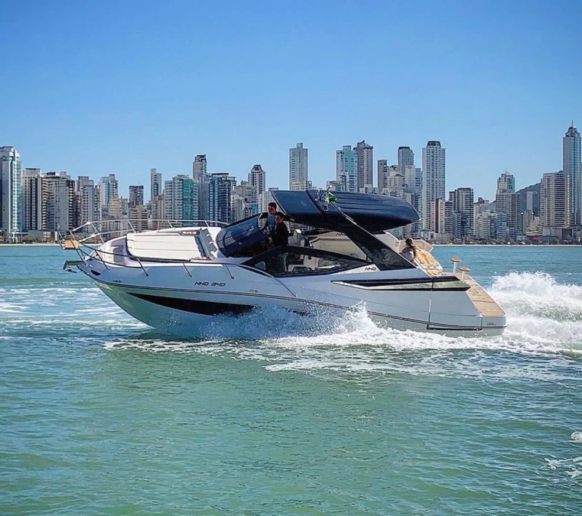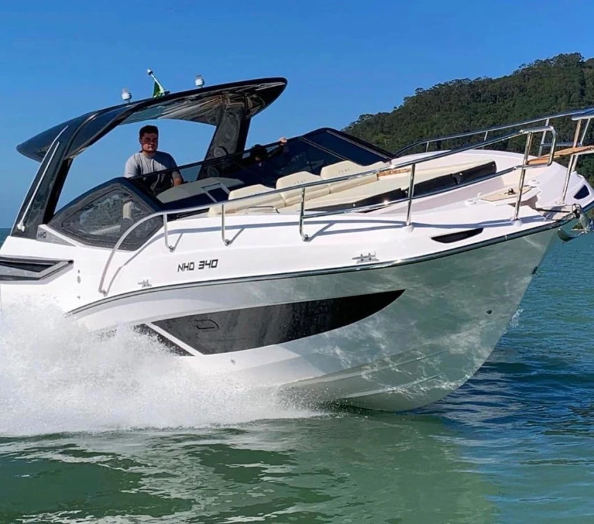 Incrível oportunidade para deixar os seus momentos de lazer ainda melhores! Embarcação compartilhada em 4 cotas. - Marina Capital Bertioga Lancha 2022 com menos de 100 horas e motor em garantia! >Motorização:2 motores Mercruiser 4.5L 250 HP, DTS Rabetas Bravo 3 > Teto rígido > Espaço Gourmet com churrasqueira, 2 banquetas e o incrível Open Deck, que é uma inovação da NHD Boats, e permite que as laterais do barco abaixem, e aumentem o espaço útil de popa > Piso em EVA sintético > Som bluetooth Boss com alto-falantes na targe e proa > rádio VHF e bússola > Guincho elétrico