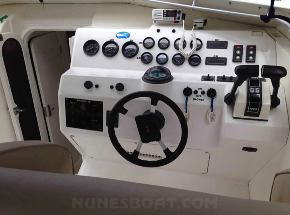 CÓD 6707 MAGNUM 39: 1997, 2 x vp kad42 235hp, diesel, 560hs de uso, 39 top e 27 cruzeiro, rabetas vp 295 dp, âncora, antena de vhf e tv, bomba de água doce, (3) bombas de porão, bússola, buzina, capota, carregador de bateria, carreta de encalhe, churrasqueira, chuveiro de popa, direção hidráulica, farol, geladeira 80litros, inversor, micro-ondas, rádio vhf, sanitário elétrico, som, tapeçaria nova, tv, (4) ventiladores... F/c. Nunes (13)99706-0395