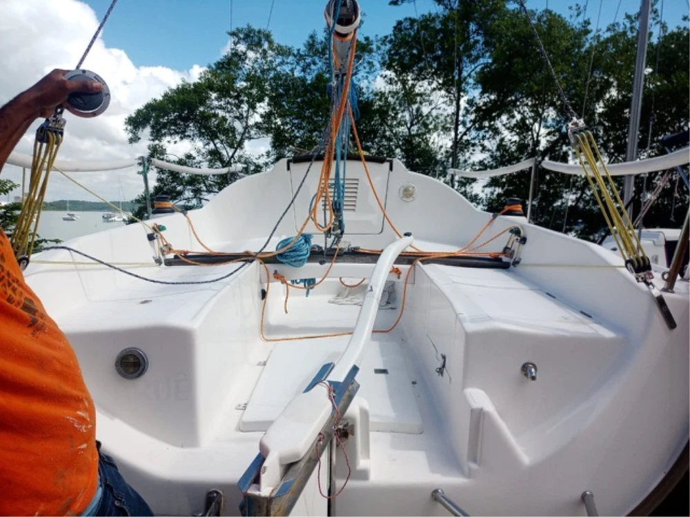 Skipper 21 Saruê Quilha fixa Esticadores e terminais novos Sanitário hidráulico Tanque d’água 100L Todos Cabos novos Adriças e escotas Velas 1 mestra dacron usada 1 genoa em prolam black nova usada 4 vezes 1 balão Quantum novo usado 3 vezes 1 balao north usado Carreta de rampa Bússola Barco sempre guardado em seco Motor marcury 5hp rabeta longa com 10 hs de uso Oportunidade R$100.000,00 Roberto Santiago 71 991261105