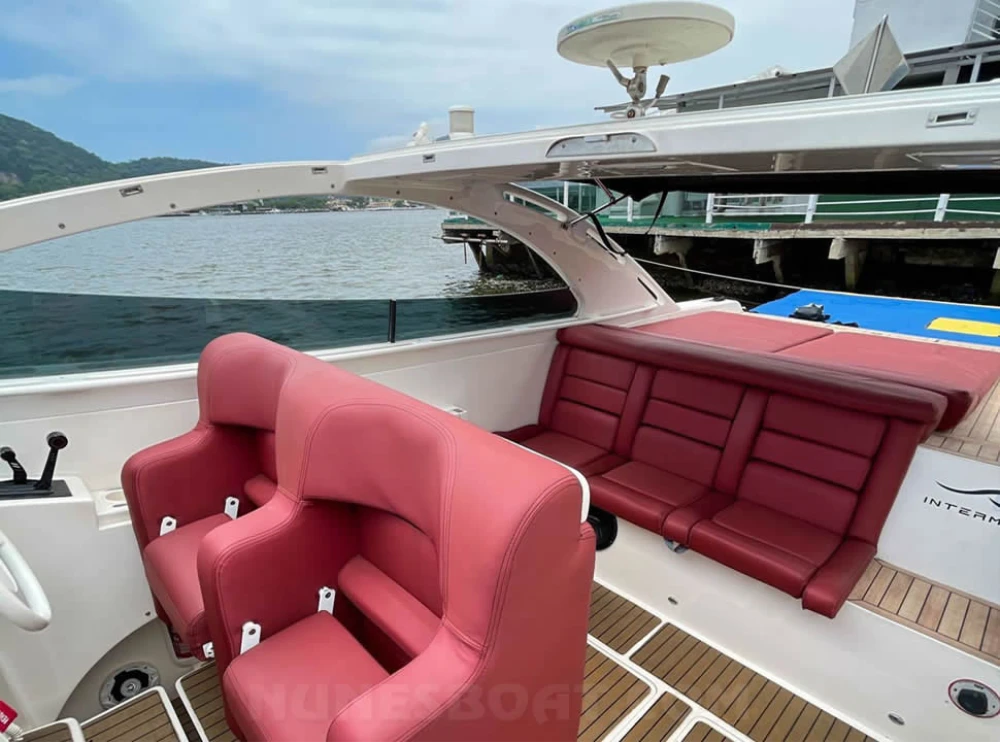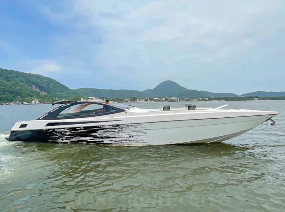 CÓD 7900 EXCALIBUR 45: 1995, 2 x caterpillar v8 435hp, diesel, 545hs de uso, rabetas de superfície mondrive, 42 top e 30 cruzeiro, âncora, antena de vhf, (4) baterias, bomba de água doce, (3) bombas de porão, bússola, buzina, capota c/fechamento total, carreta de encalhe, churrasqueira, chuveiro, (10) coletes, direção hidráulica, (2) extintores, flap hidráulico, foguetes, geladeira, freezer, gerador, gps c/plotter, guincho elétrico, inversor, rádio vhf, sanitário elétrico, som, strobolight, teka eva, tv, tomada de cais... F/c. Nunes (13)99706-0395