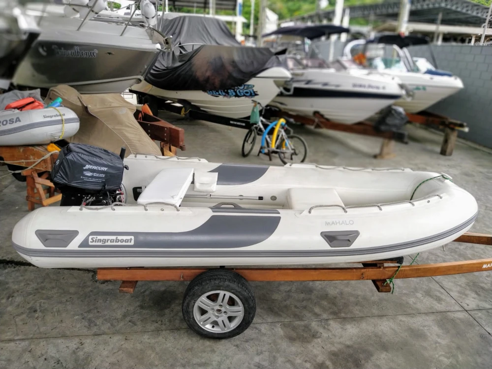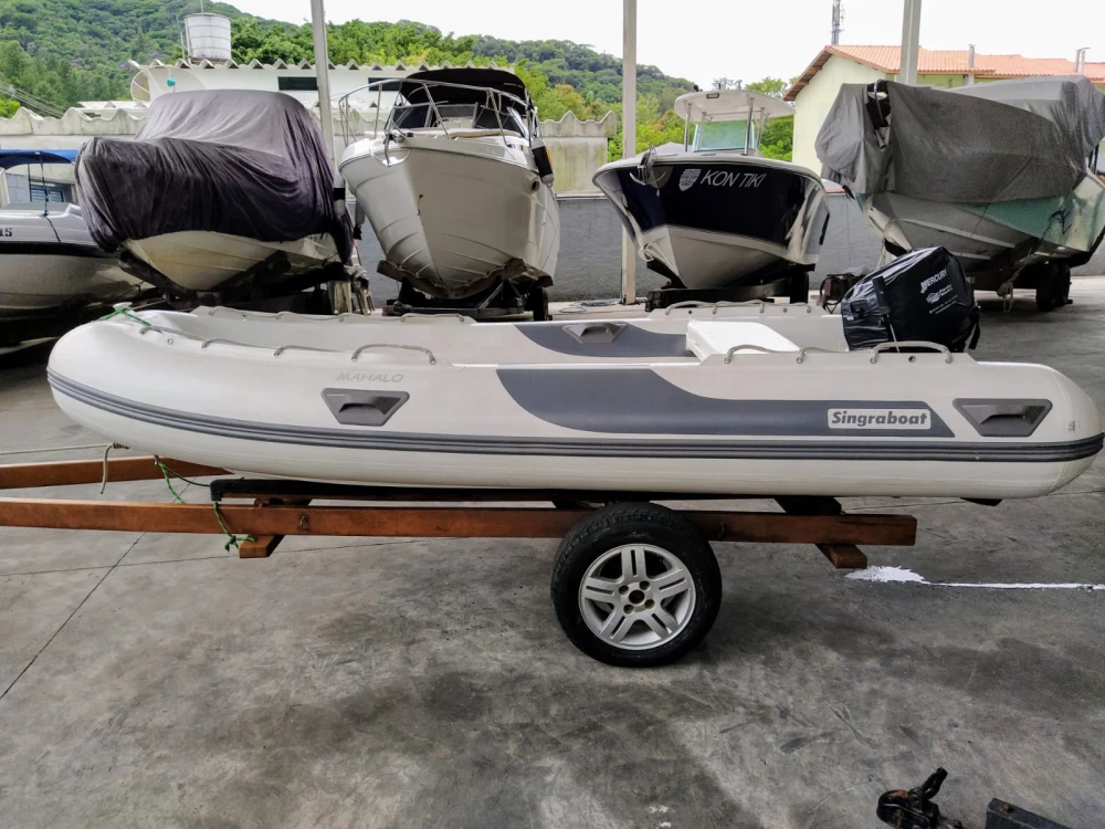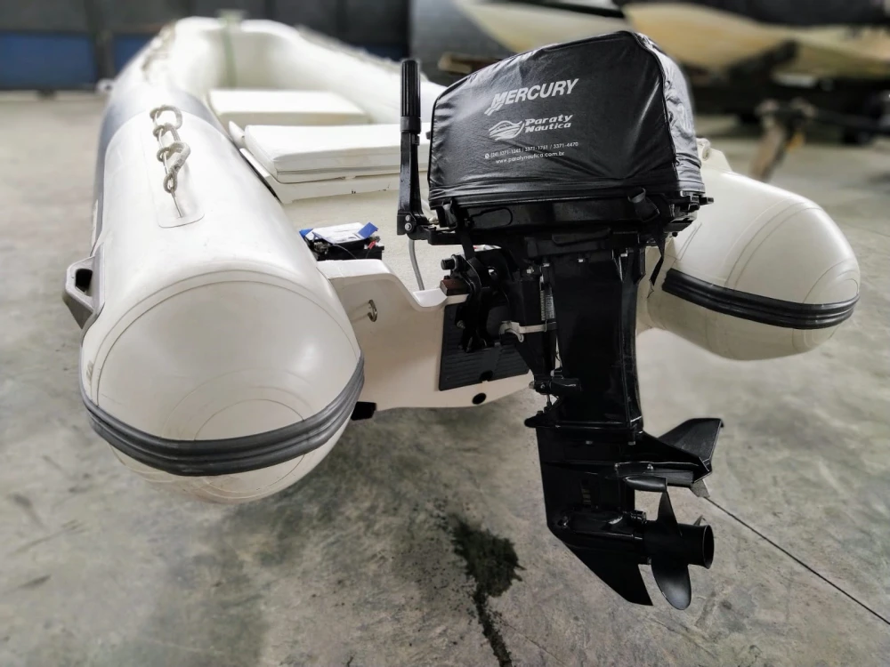 ZEFIR 360 Gold 12 pés, com flutuadores novos Singraboat 2022, com assentos estofados, par de remos e fole; novíssimo. Com motor MERCURY 30 HP partida elétrica, ano 2022 com 29 horas de uso. Com tanque de 25 litros com indicador. Está garantia Mercury, com manuais e kit ferramentas. Com carreta - não rodoviária - PIER, com rodas de liga 14". Documentação perfeita Capit. São Sebastião SP. O inflável ZEFIR está em marina no Saco da Ribeira, Ubatuba SP. Conservadíssimo.