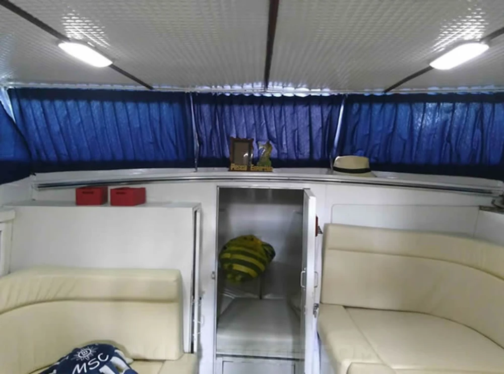 CÓD 6090 DM 36: 1971, 2 x mb 352a 210hp, diesel, pé de galinha, 28 top e 16 cruzeiro, pé de galinha, âncora, antena de vhf, ar condicionado, baterias, bomba de água doce, (3) bombas de porão, bússola, buzina, capota c/fechamento total, carregador de bateria, carreta de encalhe, churrasqueira, chuveiro de popa, coletes, defensas, defletor de radar, direção hidráulica, dvd player, ecobatímetro, (2) extintores, flap hidráulico, foguetes, geladeira, gps c/plotter, guincho elétrico, microondas, rádio vhf, sanitário elétrico, som, strobolight, tv 32”, tomada de cais... F/c. Nunes (13)99706-0395