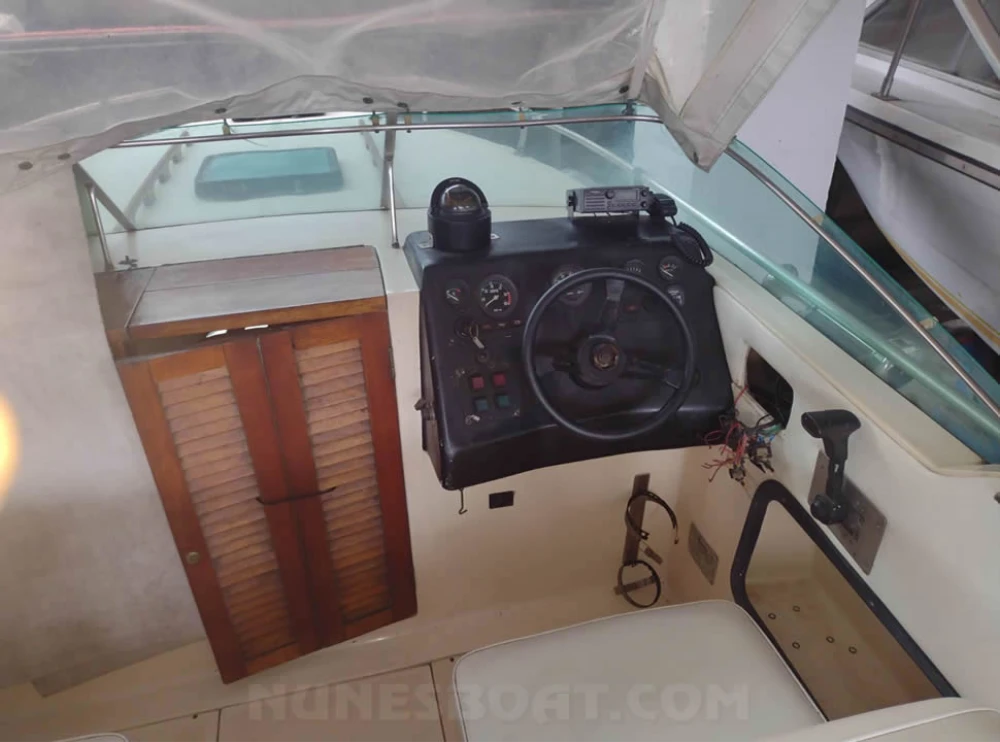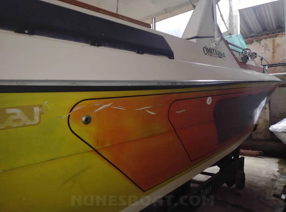 CÓD 2390 CIMITARRA 25: 1988, mwm 170hp, diesel, 410hs de uso, 32 top e 20 cruzeiro, rabeta vp 280, âncora, antena vhf, bateria, bomba de água doce, (2) bombas de porão, bússola, buzina, capota, carreta de encalhe, chuveiro de popa, direção hidráulica, flap comum, coletes, extintor, geleira, gps, rádio vhf, sanitário comum... F/c. Nunes (13)99706-0395