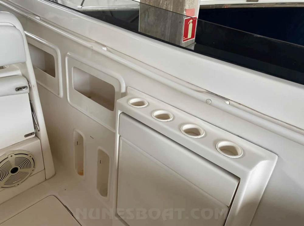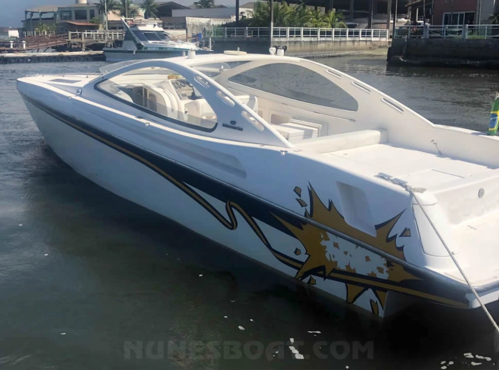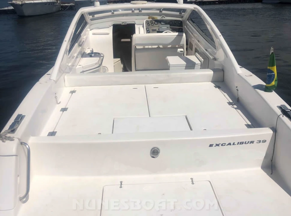 CÓD 6653 EXCALIBUR 39: 2000, 2 x vp kad44 260hp, diesel, 612hs de uso, 43 top e 30 cruzeiro, rabetas vp 295 dp, âncora, baterias, bomba de água doce, (3) bombas de porão, bússola, capota, carreta de encalhe, churrasqueira, chuveiro de popa, coletes, direção hidráulica, extintores, flap hidráulico, geleira, (2) gps c/plotter, guincho elétrico, inversor, microondas, rádio vhf, sanitário elétrico, tv 32”, tomada de cais, (4) ventiladores... F/c. Nunes (13)99706-0395