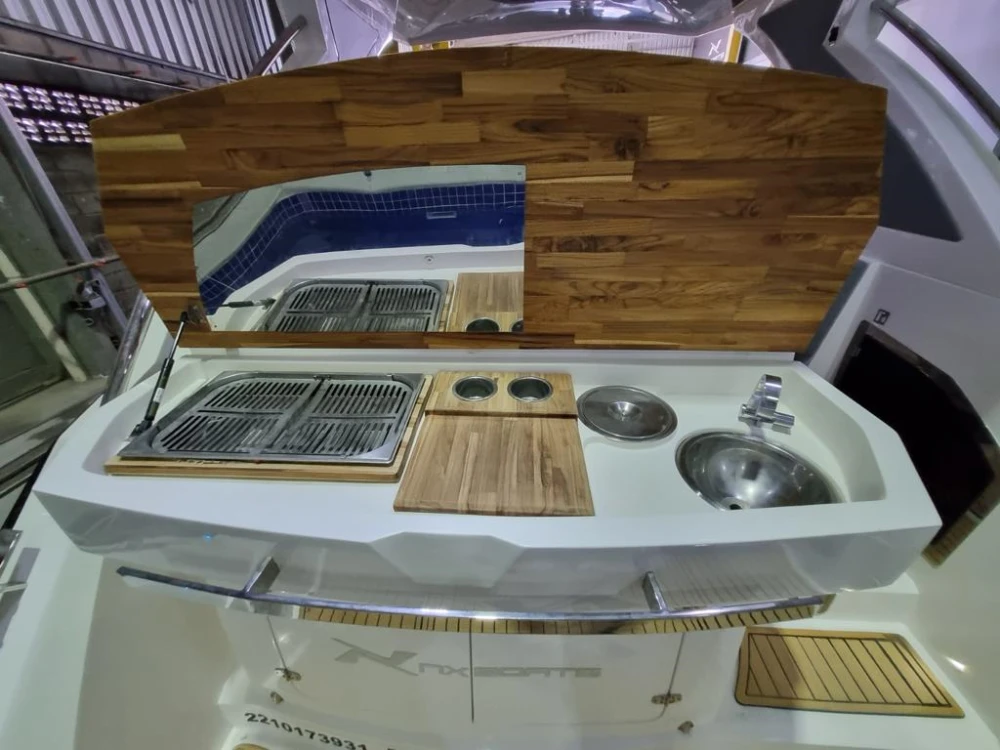 Oportunidade - NX 360 ano 2019 com parelha Volvo Eletrônico de 300hp - cerca de 440 horas de uso Opcionais: - Carreta - Espaço Gourmet: Churrasqueira, Pia e Tábua de corte - EVA - Flaps - Som com 8 Alto falantes JBL + Subwoofer JBL -GPS Simrad 5" - Capa de Proteção - Tomada de Cais - Plataforma Fundeck Hidráulica