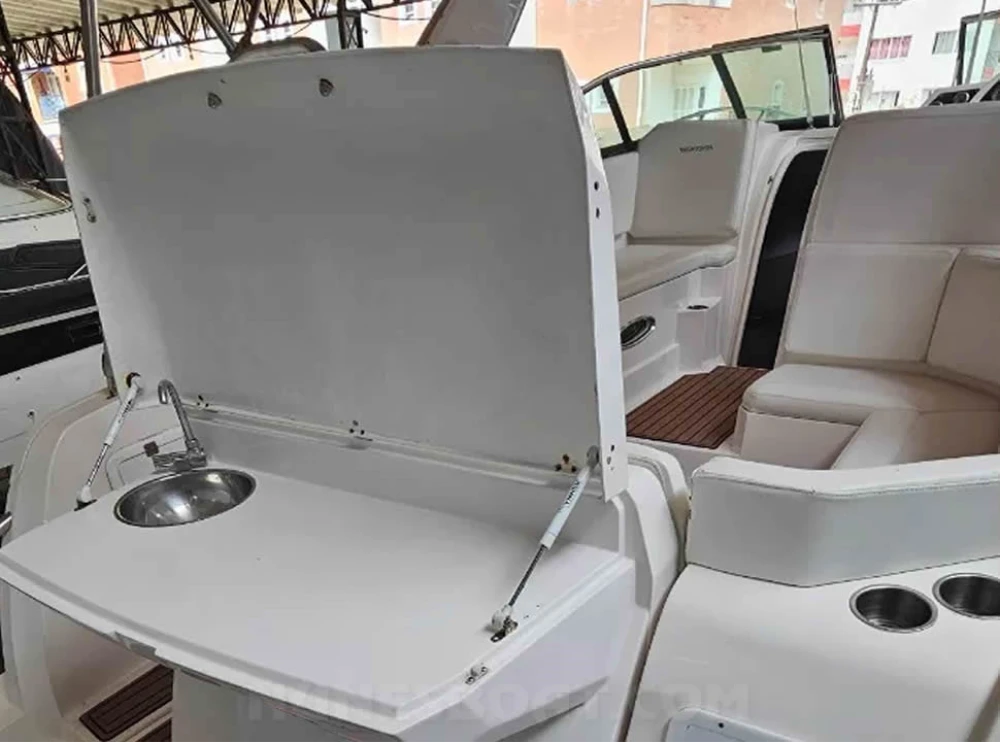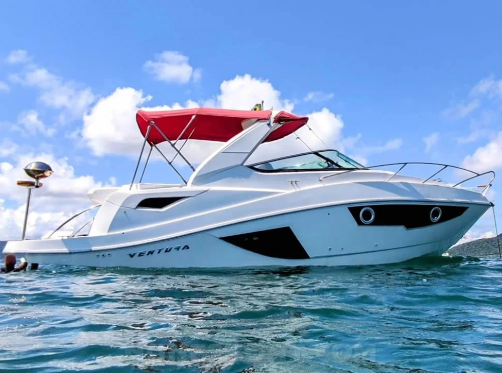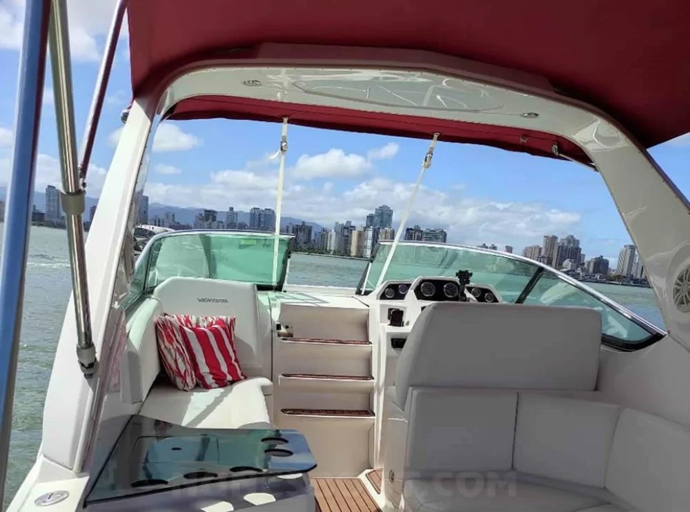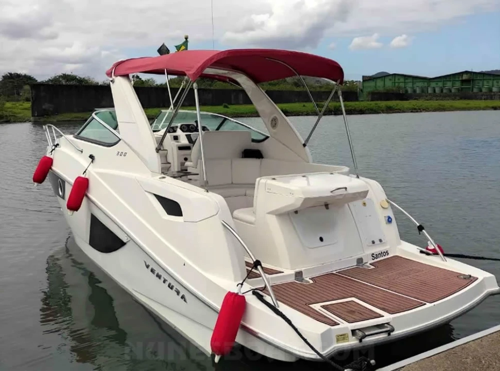 CÓD 4501 VENTURA 300: 2015, volvo penta v8 5.7 320hp, gasolina, 315hs de uso, 37 top e 25 cruzeiro, rabetas vp dp, âncora inox, baterias, bomba de água doce, (4) bombas de porão, bússola, buzina, capota, carreta de encalhe, churrasqueira inox, chuveiro de popa, coletes, comando eletrônico, espaço gourmet na popa com pia em aço e torneira c/regulagem, extintores, defensas, flaps hidráulicos, geleira, gps c/plotter, guincho elétrico, luz de cortesia, rádio vhf, sanitário elétrico, sistema de água pressurizada, sistema de som, teca eva, tomada de cais... ... F/c. Nunes (13)99706-0395