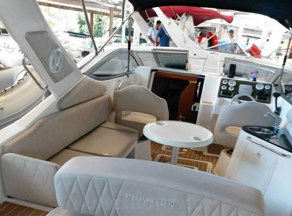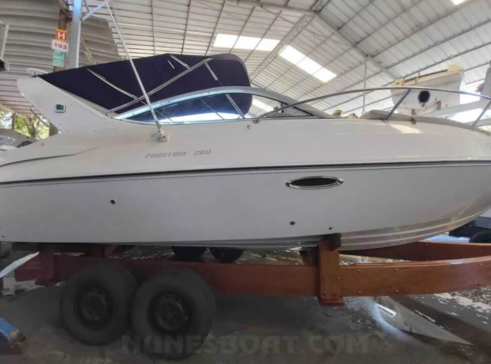 CÓD 2540 PHANTOM 260: 2011, mercruiser 5.0 mpi 260hp, gasolina, 435hs de uso, 37 top e 25 cruzeiro, rabeta bravo one, âncora, atena vhf, (2) baterias, bomba de água doce, (2) bombas de porão, bússola, buzina, capota c/fechamento total, carreta de encalhe, chuveiro, coletes, defensas, (2) extintores, flap hidráulico, geleira, gps, guincho elétrico, luz subaquática, sanitário elétrico, solário de proa, som, strobolight, teca eva, tv 25”, (2) ventiladores... F/c. Nunes (13)99706-0395
