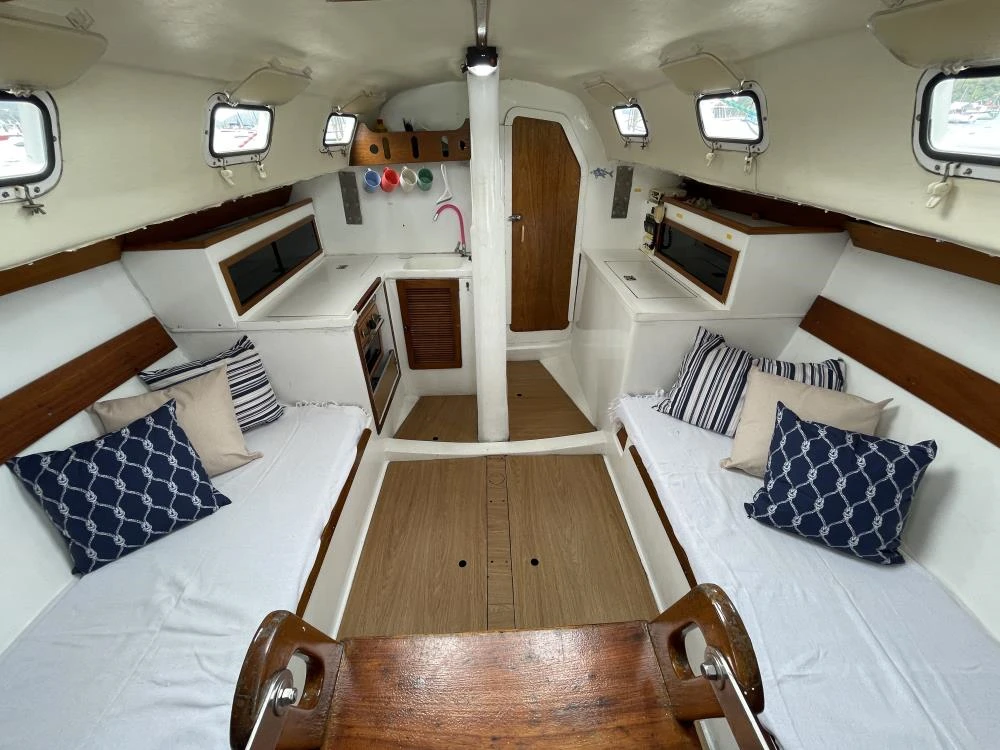 Veleiro Tripp 33, ano 1995, barco muito bem cuidado e em pleno uso, pintura de fundo feita em setembro de 2023, troca de todos os registros, revisão motor e rabeta em dia, projeto americano, espaçoso, veleiro de cruzeiro e regata, veleja muito bem, motor yanmar 2gm20, rabeta yanmar sd20, 2 velas mestra, 3 genoa, 1 balão, pau de spinaker, âncora bruce 12kg inox com destorcedor, mais uma âncora reserva, 20 mts de corrente, 40 metros de cabo, amplo cockpit, mecânica, elétrica e hidráulica revisados, painel solar com 155w, controlador carga 40a mppt, banco de bateria com 2 baterias de 100 amperes, rádio vhf novo, aparelho de som marinizado com bluetooth, 6 catracas harken, cabos novos, estaiamento revisado, burro telescópico e pau de spinaker em perfeito estado, enrolador de genoa harken, bimini, capotaria, boca 3,10 mts, calado 1,95 mts, altura da cabine 1,85mts, tanque de água 200litros, diesel 80 litros, inversor 1000w, ventilador, bomba de porão, wc elétrico, fogão 2 bocas com forno, gás de 5kg, extintores, documentação em dia, capacidade 6+1, barco está em Ubatuba. Contato 12 982790852