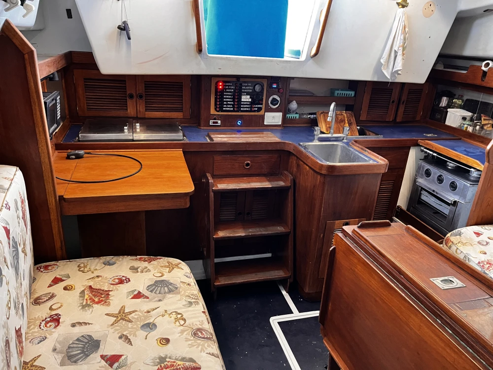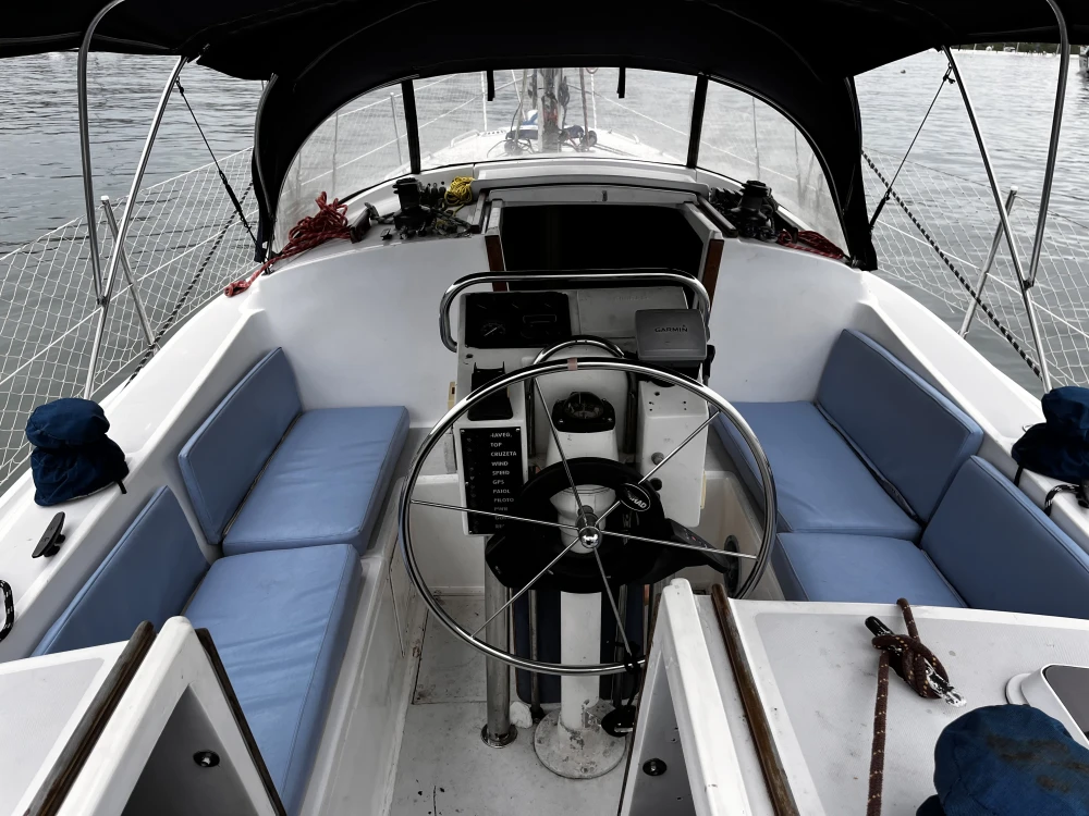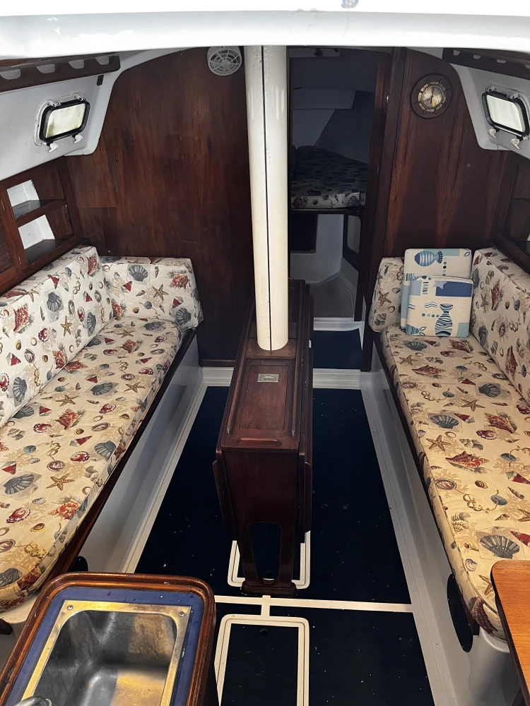 TRINIDAD 37 LOCAL Florianópolis, SC Ano de Construção: 1990 Calado de 1,40m Estaiamento em ótima condição Motor: Volvo MD 2040 40HP Tanque de diesel inox/150l Tanque de água 300l Torneiras todas com agua quente e fria pressurizada em todo o barco 2 banheiros, o de proa com vaso sanitario elétrico Ducha pressurizada nos dois banheiros do barco CABINE DE PROA Cama de casal Armários e prateleiras CABINE DE POPA Cama de casal Armarios e prateleiras Banheiro privativo com agua quente e fria pressurizada CABINE PRINCIPAL Mesa de jantar para 6 pessoas. Mesa de navegação 2 sófas que viram cama de solteiro Amarios e prateleiras COZINHA Geladeira 12v Fogão de 2 bocas com forno Armarios e prateleiras INSTRUMENTOS Bussola na Roda de leme GPS Piloto automático na roda de leme Radio VHF fixo VELAS Mestra1 Genoa media Enrolador de genoa Lazy Jack Bimini e Dog house com fechamento entre eles Fechamento nas laterais do Bimini Targa ELÉTRICA Painel fotovoltaico com controlador de carga 4 Baterias Moura 150A 1 Bateria Moura de 100A para o motor. Carregador de bateria importado Âncora Bruce de 15kg com 10 metros corrente 10mm Guincho para corrente de 10 mm Âncora de reserva Leme de Fortuna ja pronto no barco Excelente barco para navegação oceânica ou “live aboard Documentação em Dia