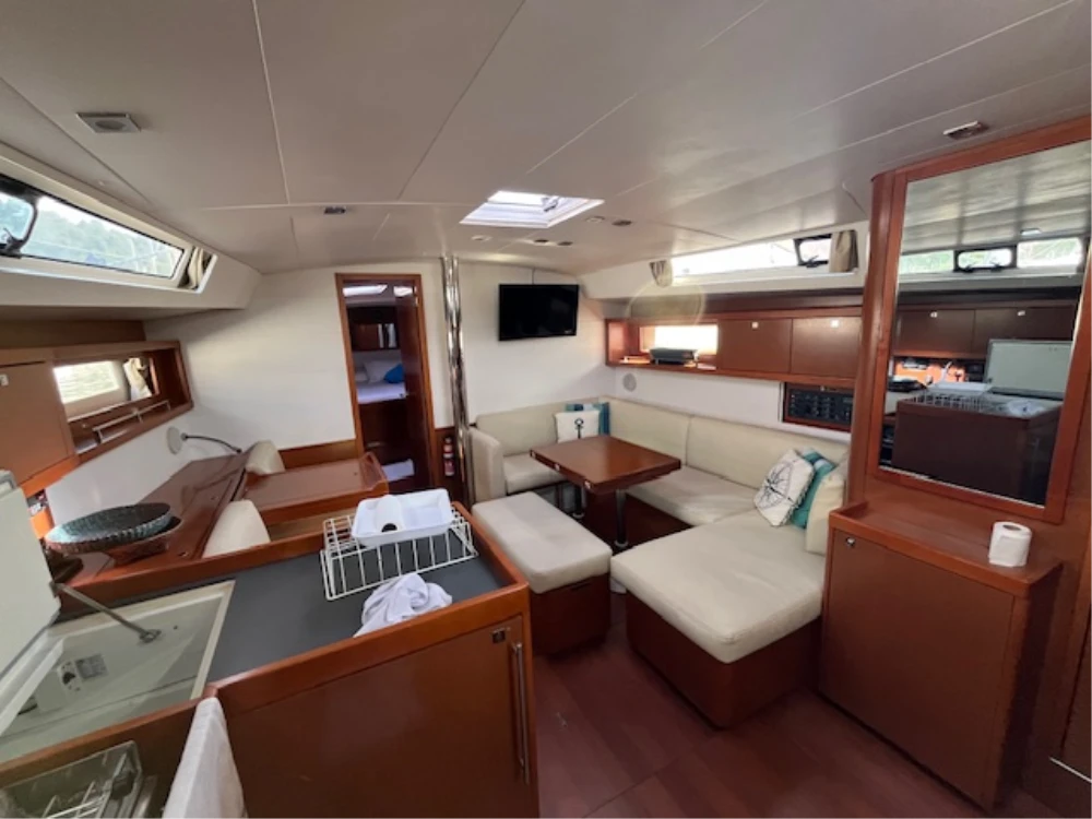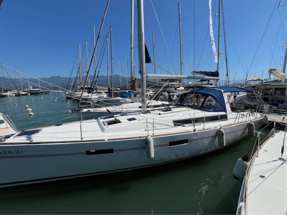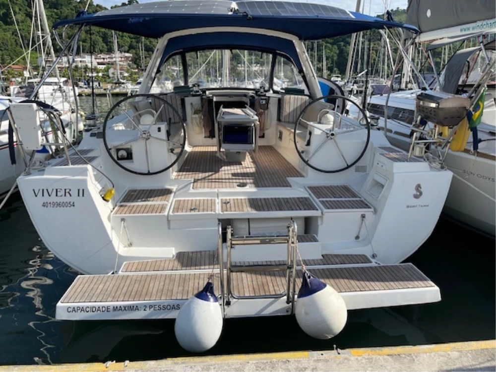 Ano 2014 Motor Yanmar 54hp Rabeta Bow trusther Mastro com enrolador de mestra Enrolador de genoa Guincho elétrico de ancora Catracas elétricas Teka no cockpit Capotaria Completa Plataforma de popa elétrica Eletrônica: O Wind Eco Log Piloto Automatico Simrad Ploter 12 polegadas Seu 12p VHF Geladeira Freezer Wcs elétricos Placa solar