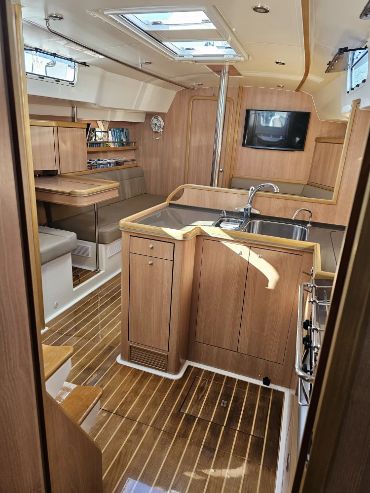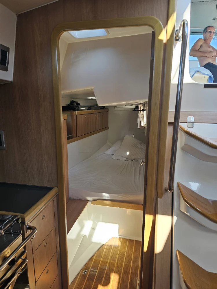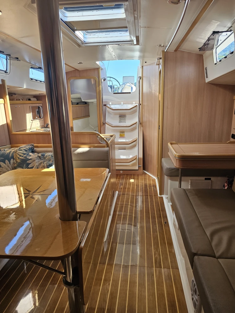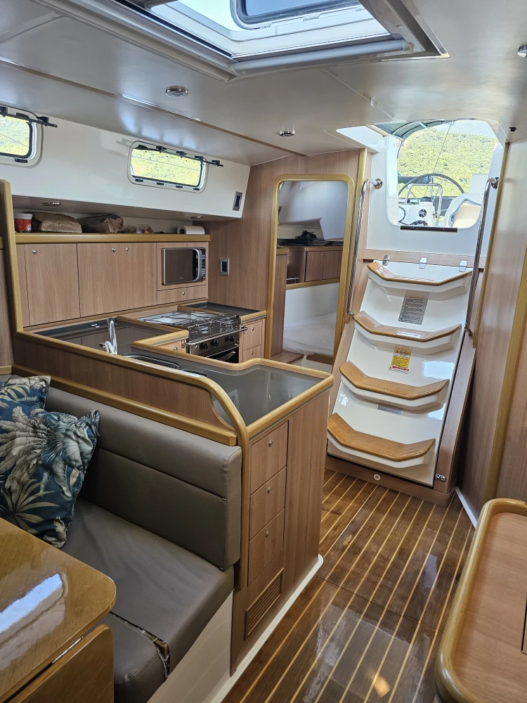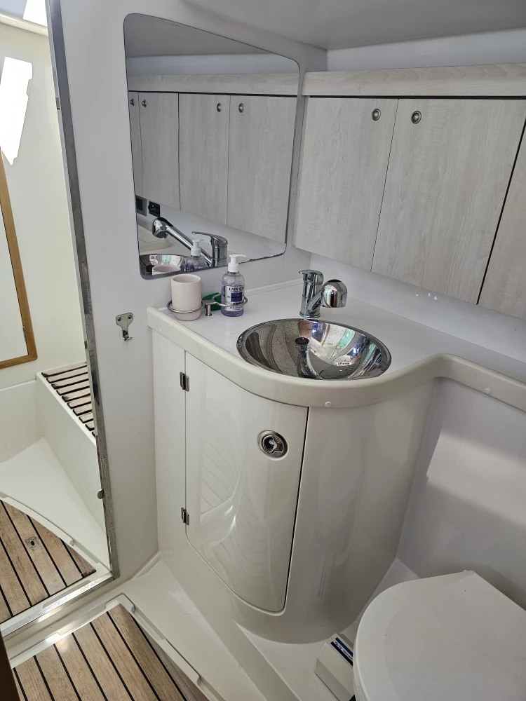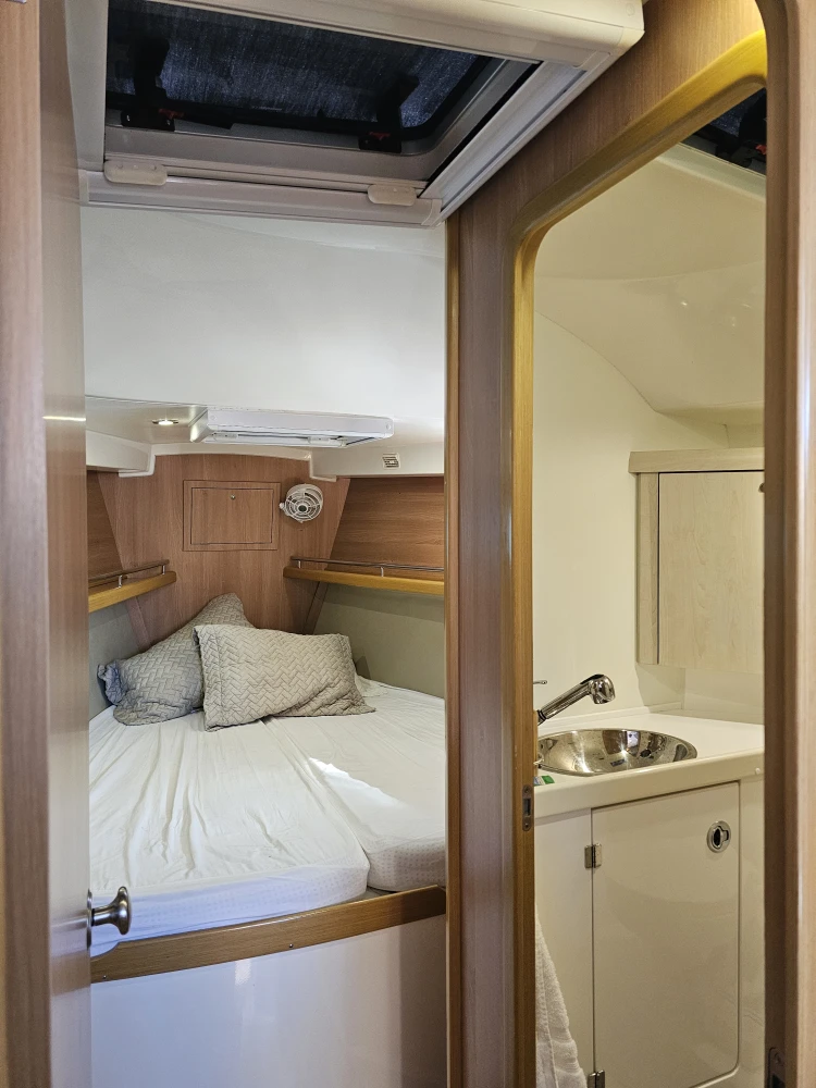 Características: 1 cabine com banheiro na proa + 1 cabine popa + banheiro grande com box + area de estar com mesa de jantar e sofá+ cozinha em L+ paiol grande para guardar equipamento de mergulho, pesca, bicicleta, cadeiras de praia, ferramentas, etc... Teka no conves e cokpit. Designer: Nestor Völker Comprimento total: 12,60m Comprimento linha d’água: 11,00m Boca máxima: 3,95m Deslocamento: 7.780kg Calado A: 1,95m Calado B: 1,60m Capacidade de água: 430 litros Capacidade de diesel: 200 litros Morotização: Yanmar 40HP – Rabeta R$ 1.400.000,00 ESPECIFICAÇÕES TÉCNICAS: Modelo: Delta 41 Projeto: Nestor Volker Ano: 2020 Tamanho: 41 pés Versão 2 cabines e 2 banheiros Boca: 3,95m Calado: 2 m Pintura de fundo: fevereiro 2024 Capacidade água: 430 litros Capacidade diesel: 200 litros MOTORIZAÇÃO Motor: Yanmar Modelo: 3JH40 Potência: 40 hp Horas de uso: 865h Transmissão: Rabeta Modelo do hélice: fixa de 3 pás VELAS 01 mestra em dracon semi fullbattem Quantum 01 genoa em dracon Quantum ELETRÔNICOS ChartPlotter Raimarine no cockpit com carta Navionics Wind Raimarine I 60 Piloto automático Raimariner EV 200 Rádio VHF Lawrance com AIS ELÉTRICA 4 Baterias Freedom DF-2000 105Ah para banco de serviços 2 baterias 70AH para motor e catráca elétrica Placa solar 100w com Ar-condicionado 12.000 BTUs (não tem gerador) ACESSÓRIOS Bimini, dog house e lazy bag Enrolador de genoa Targa em inox com turco e bancos no púlpito Plataforma de popa 02 catracas Nautos 48” para escotas da genoa 02 catraca Nautos 44” para adriça e rizos, sendo uma elétrica ATRACAÇÃO/FUNDEIO Guincho elétrico Quick de 1000w com controle remoto com fio Quick Ancora Roka de 20kg 60m de corrente de 8mm 40m de cabo DOCUMENTAÇÃO Em dia