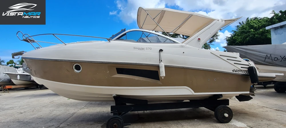 VISTAMAR NÁUTICA - Marina Aratu LANCHAS NOVAS E SEMI-NOVAS A ligação entre você e seu sonho. CASCO/PÉS: Singular 27 ANO CONSTRUÇÃO: 2017 ANO INSCRIÇÃO: 2017 PROA: Aberta CAPACIDADE: 01 + 09 MARCA DO MOTOR: Mercruiser POTÊNCIA: 250hp ANO MOTOR: 2017 PROPULSÃO: Centro COMBUSTÍVEL: Gasolina HORAS: 744h Muflas trocadas em fevereiro de 2024 (Na garantia) ACESSÓRIOS: Salvatagem completa, carreta encalhe, defensas, som com alto falantes marinizados, bússola, toldo, mesa de centro, sonda com gps e flaps. VALOR: R$260.000,00 VENHA NOS VISITAR E CONHECER ESTA E OUTRAS EMBARCAÇÕES NOVAS E SEMI-NOVAS. Agende seu test-drive. VISTAMAR NÁUTICA ABERTO DE SEGUNDA A SÁBADO DAS 09H ÀS 17H E AOS DOMINGOS E FERIADOS DAS 08H ÀS 13H. CONTATOS E REDES SOCIAS: 071-99954-4411 (OI) (WHATSAPP) 071-98888-4411 (VIVO) (WHATSAPP) E-MAIL: vistamarnautica@hotmail.com INSTAGRAM: @vistamarnauticaoficial FACEBOOK: Vistamar Náutica SITE: www.vistamarnautica.com.br