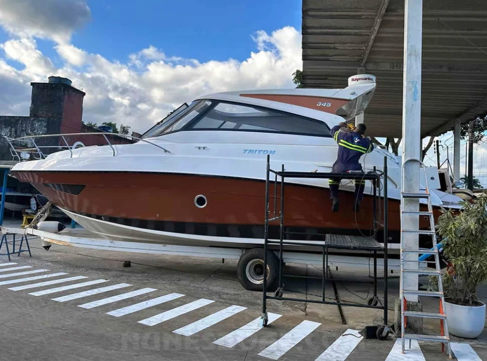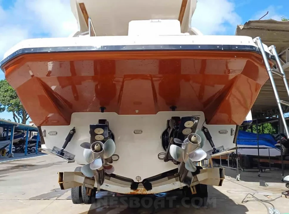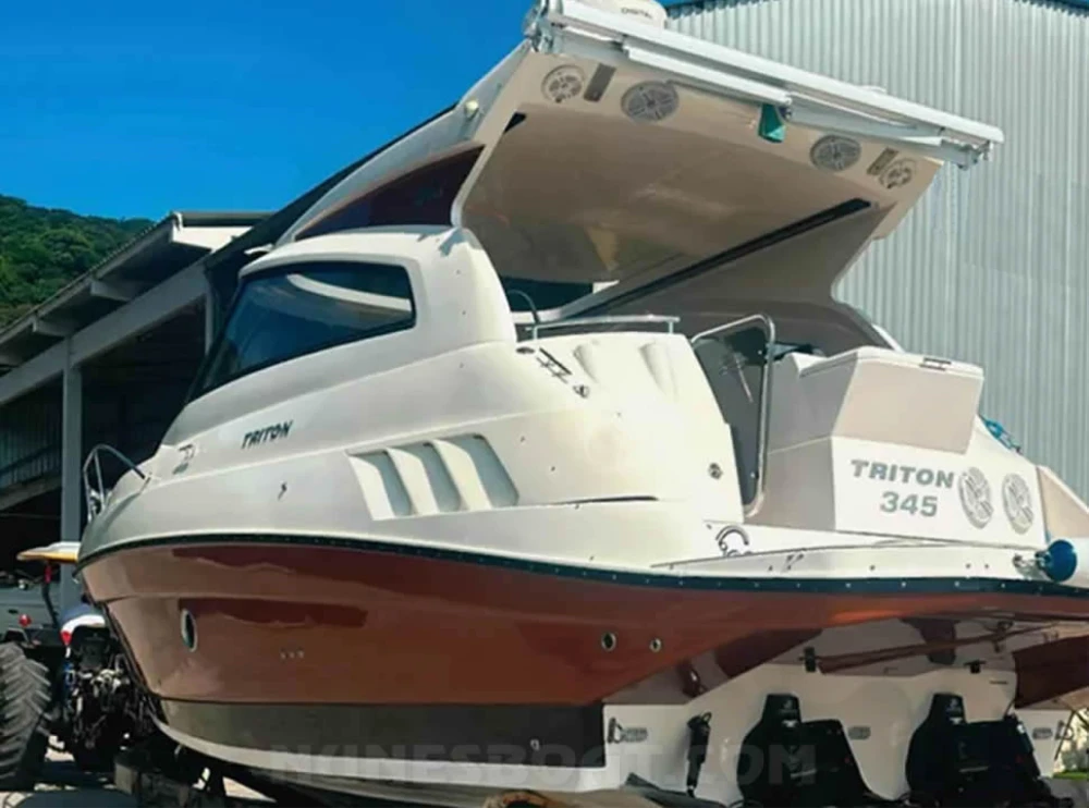 CÓD 5920 TRITON 345 HT: 2014, 2 x mercruiser qsd 270hp, diesel, 148hs de uso, 40 top e 28 cruzeiro, rabetas bravo three, âncora, ar condicionado 12000btu, antena tv digital, (4) baterias moura, bomba de água doce, bomba de porão, bússola, carreta de encalhe, churrasqueira, chuveiro de popa, coletes, defensas, direção hidráulica, extintores, farol de busca, flaps eletrônicos digital, fogão indução, foguetes, geladeira, gerador swell 7.0 D, gps raymarine, guincho elétrico, inversor, luzes aquáticas rgb (trocam de cor), micro-ondas, rádio vhf, piloto automático, sanitário elétrico, som c/16 altofalantes e rádio pionner c/3 amplificadores, teka original, tv smart c/suporte de aço, tomada de cais ... F/c. Nunes (13)99706-0395