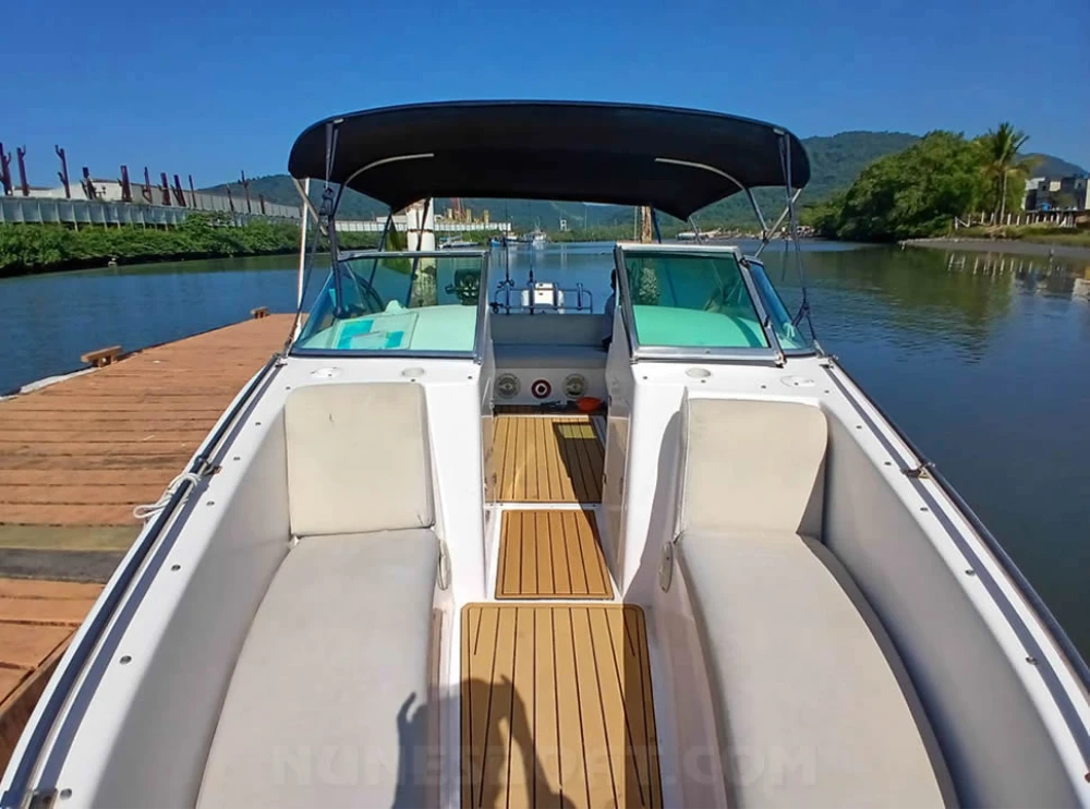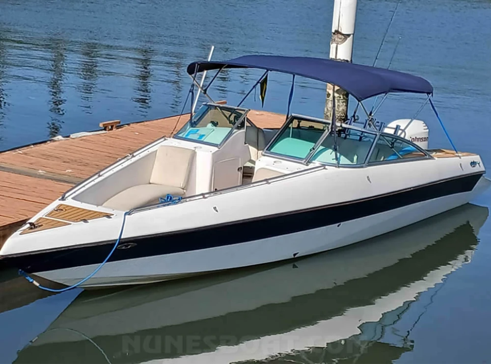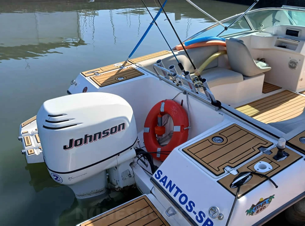CÓD 1120 MAGNUM 230: proa aberta, 2008, johnson 170hp, gasolina, ?hs de uso, 45 top e 33 cruzeiro, âncora, antena de vhf, bateria, bomba de água doce, bomba de porão, bússola, capota, carreta de encalhe, churrasqueira, (8) coletes, (2) defensas, extintor, direção cabo, geleira, rádio vhf, som... F/c. Nunes (13)99706-0395