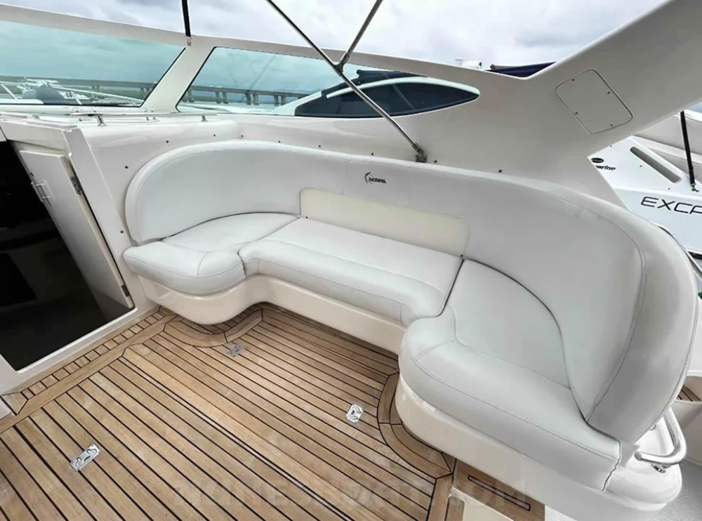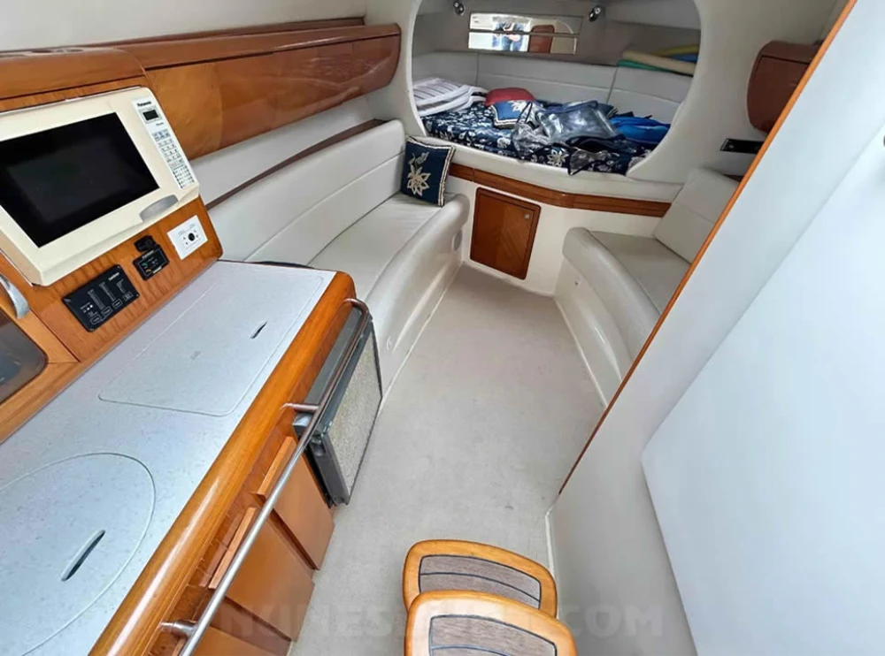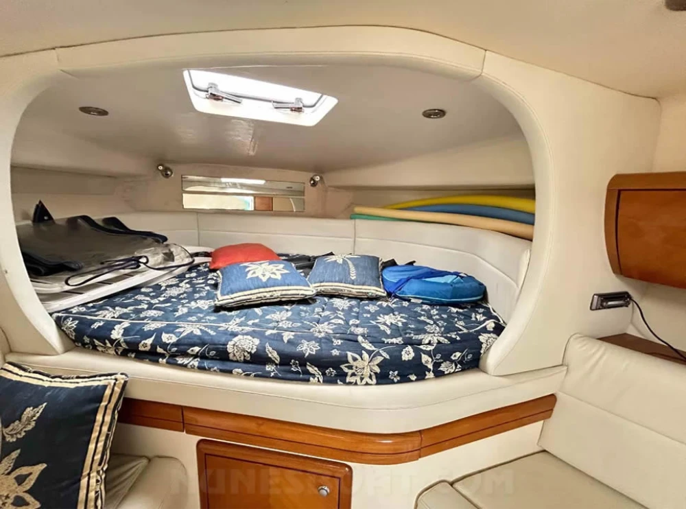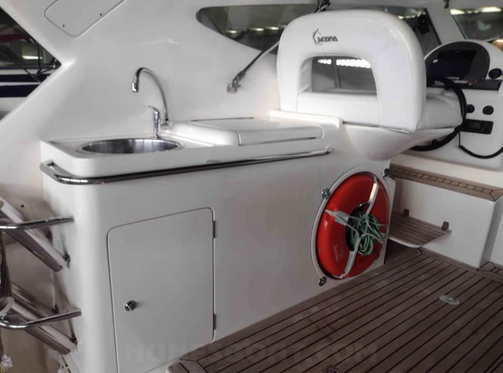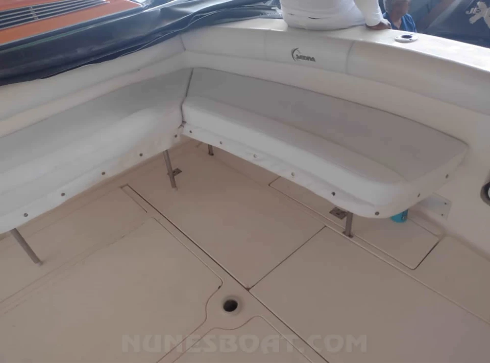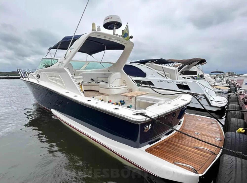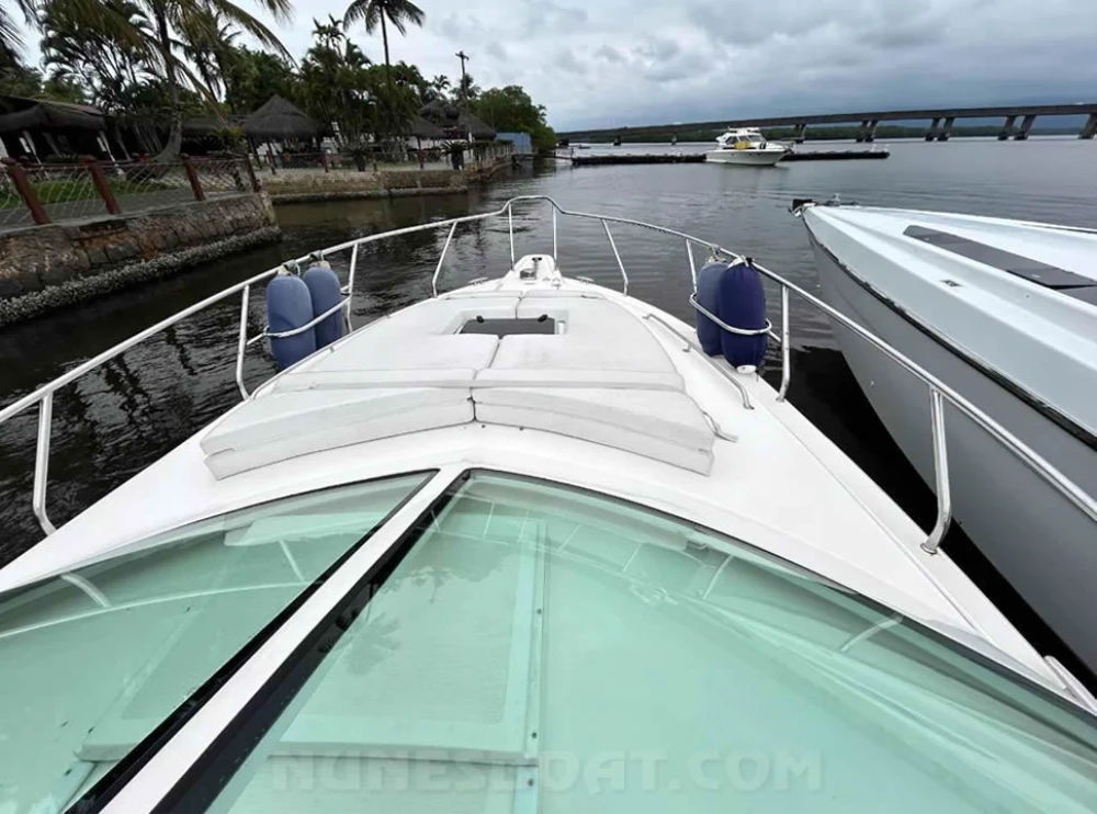 CÓD 5681 SEDNA 335: sf 33, 2006, 2 x vp d6 370hp, diesel, 1597hs de uso, 42 top e 30 cruzeiro, pé de galinha, reversor zf bw60 1 ½, âncora, antena vhf, bomba de água doce, (3) bombas de porão, bússola, capota, carregador de bateria, carreta de encalhe, chuveiro de popa, coletes, defensas, direção hidráulica, extintor, farol, flap hidráulico, geladeira, (2) gps c/plotter, guincho elétrico, inversor, micro-ondas, rádio vhf, sanitário elétrico, som, strobolight, targa, teka original, tomada de cais... F/c. Nunes (13)99706-0395