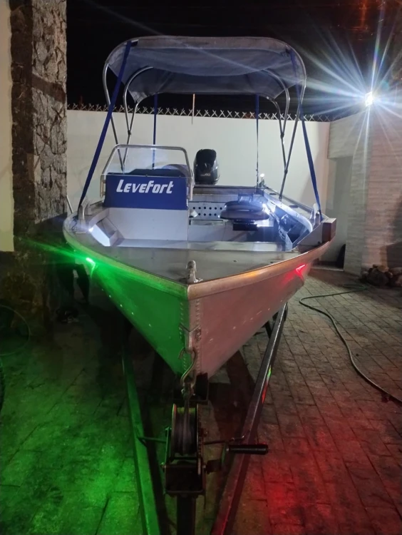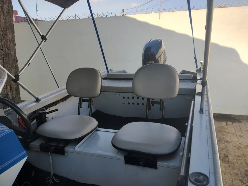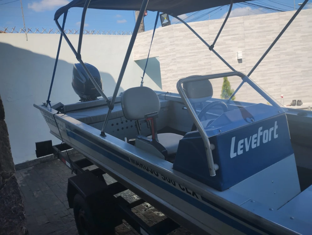Barco MARUJO CLX500 da Leve Fort, viveiro, registrado na Capitania, validade 2027; Comprimento (LOA) 5,00 m / 16,40 pés Motor Yamaha de 40HP, revisado e troca de rotor; Trim hidráulico Carreta reforçada, com doc. 2024, passarela, carretilha e parte elétrica revisada; Bomba de porão, parte elétrica interna, bom bordo e boreste, luz de alcançado, capota marítima, assentos reformados, mangueira de alimentação e reparos novos, não apresenta vazamento, muito conservado e nada para faze Peso leve 180 kg Capacidade carga 400 kg / 881,8 lbs Calado (Min) 0,11 m / 0,36 pés Tripulantes (dia/noite) 4 / Potência Min. 25 hp / 18,6 kW Potência Max. 50 hp / 37,3 kW Casco Alumínio Origem Brasil Cel: (22) 99855-7363