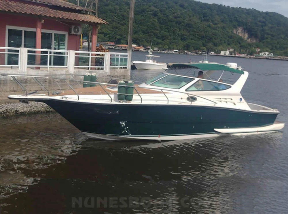 CÓD 5620 SEDNA 33: 2009, 2 x mercedes benz 366 315hp, diesel, 80hs de uso, 33 top e 23 cruzeiro, pé de galinha, reversor zf bw60 1 ½, âncora, antena vhf, bomba de água doce, (5) bombas de porão, bússola, buzina, capota, carregador de bateria, carreta de encalhe, chuveiro de popa (água salgada e doce), coletes, defensas, direção hidráulica, extintor, flap hidráulico, fogão elétrico, geladeira, gps, guincho elétrico, inversor, micro-ondas, rádio vhf, sanitário elétrico, som, sonda furuno, tv 20”, teka eva 2024, tomada de cais... F/c. Nunes (13)99706-0395
