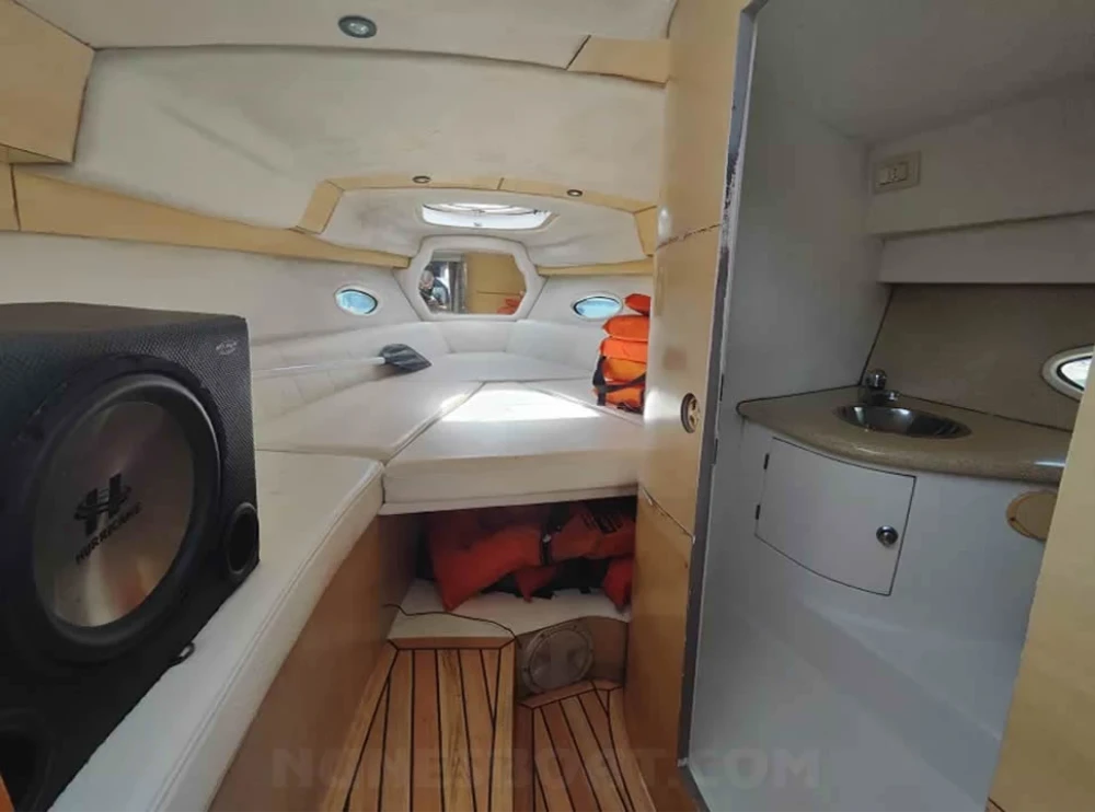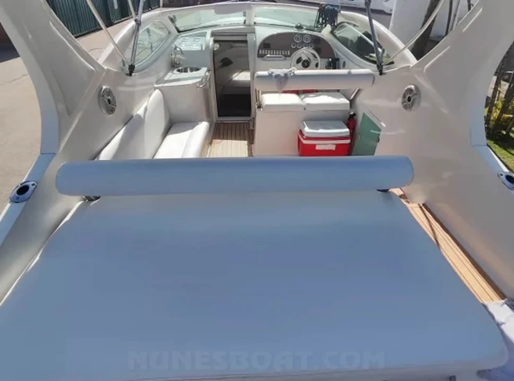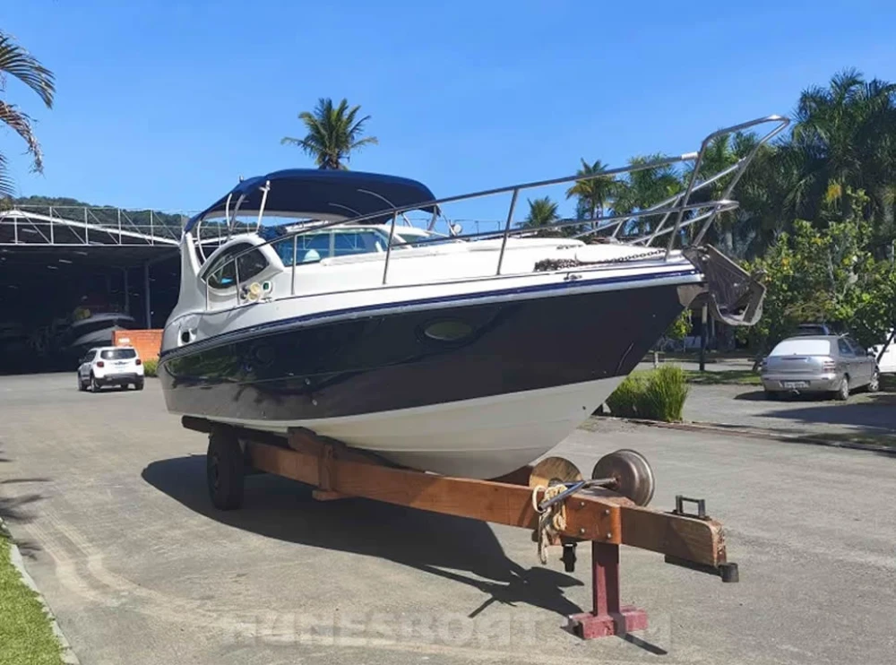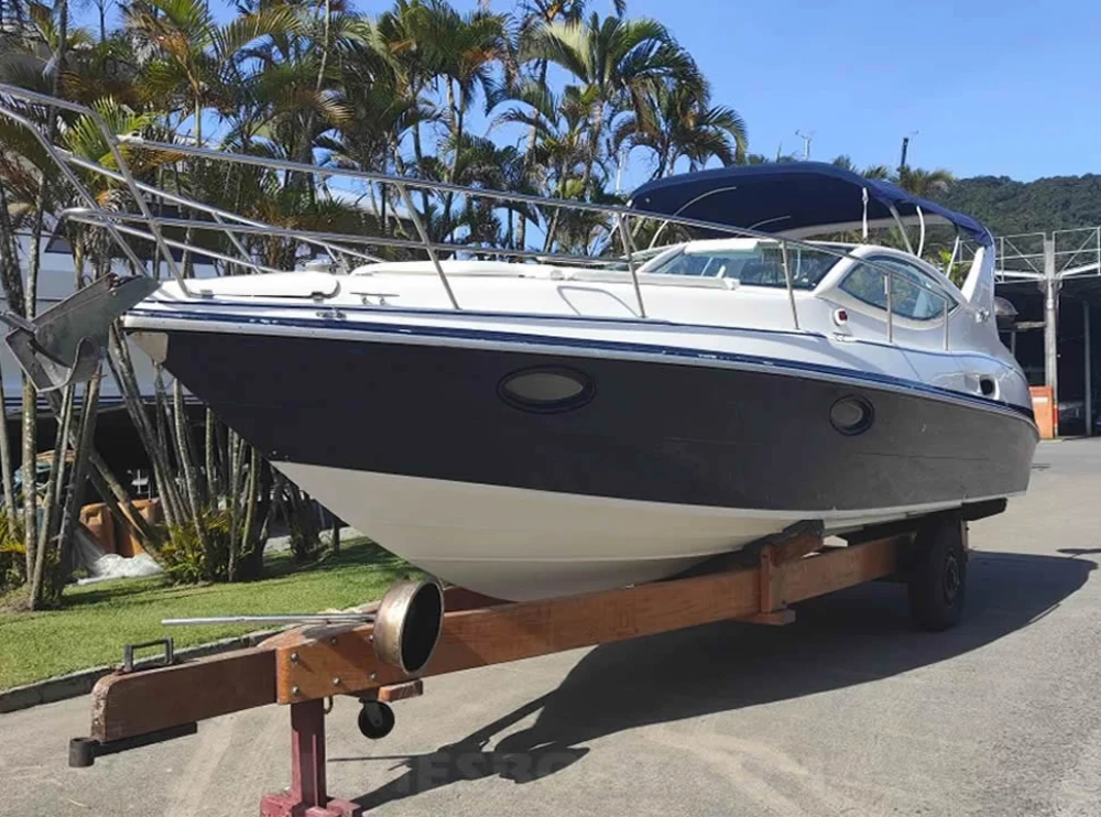 CÓD 2561 REAL CLASS 26: 2009, mercruiser 5.0 v8 260hp, gasolina, 680hs de uso, 40 top e 28 cruzeiro, âncora c/15m de corrente, antena de vhf, bateria, bomba de água doce, bombas de porão, bússola, buzina, capota, carreta de encalhe, (9) coletes, (4) defensas, exaustor na sala de máquina (blower), flap hidráulico, geleira, guincho elétrico, rádio vhf, sanitário comum, som c/bluetooth, teka eva, tomada de cais... F/c. Nunes (13)99706-0395