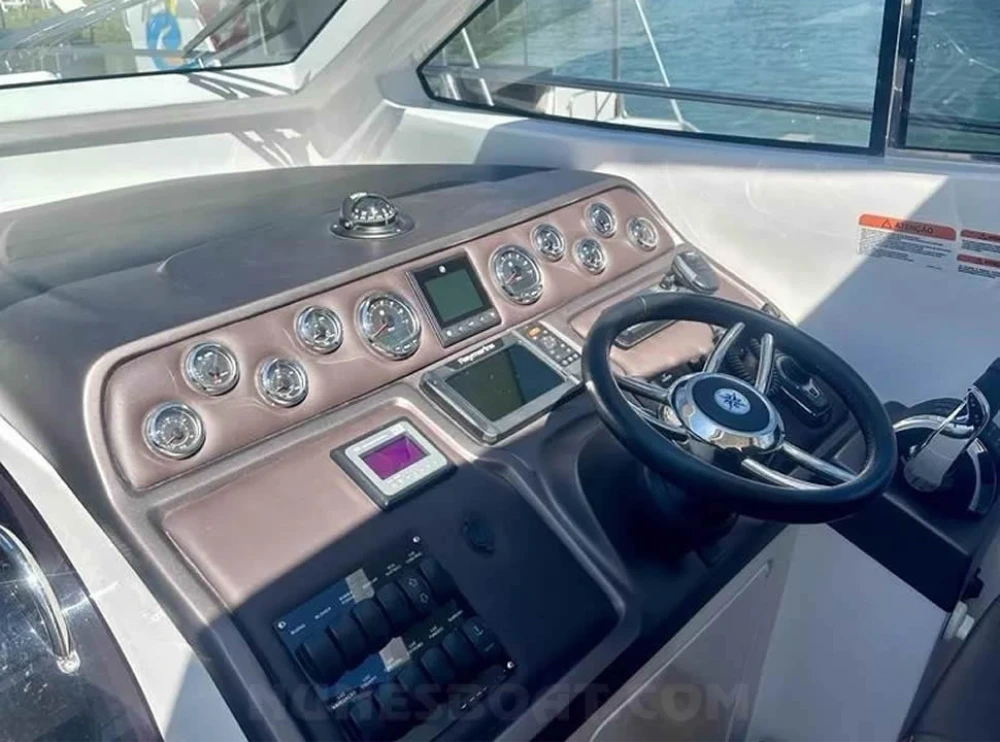 CÓD 6400 SOLARA 380 HT: 2022, 2 x mercruiser 6.2 300hp, gasolina, 90hs de uso, 42 top e 30 cruzeiro, rabetas bravo three, âncora, ar condicionado, assentos back to back, barra y p/jet-ski, baterias, bomba de água doce, (3) bombas de porão, bússola, buzina, capa de cobertura, capota c/fechamento total, carreta de encalhe, churrasqueira gourmet, chuveiro de popa, (12) coletes, direção hidráulica, extintores, farol c/controle remoto, flap hidráulico, freezer elber, gerador netuno, gps de 7” raymariner, guincho elétrico, inversor, joystick, kit placas solares, luzes subaquáticas, medidor de combustível por ultrassom, micro-ondas, rádio vhf, sanitário elétrico, solário de proa, som, sonda, teka original, tv 32”, tomada de cais ... F/c. Nunes (13)99706-0395