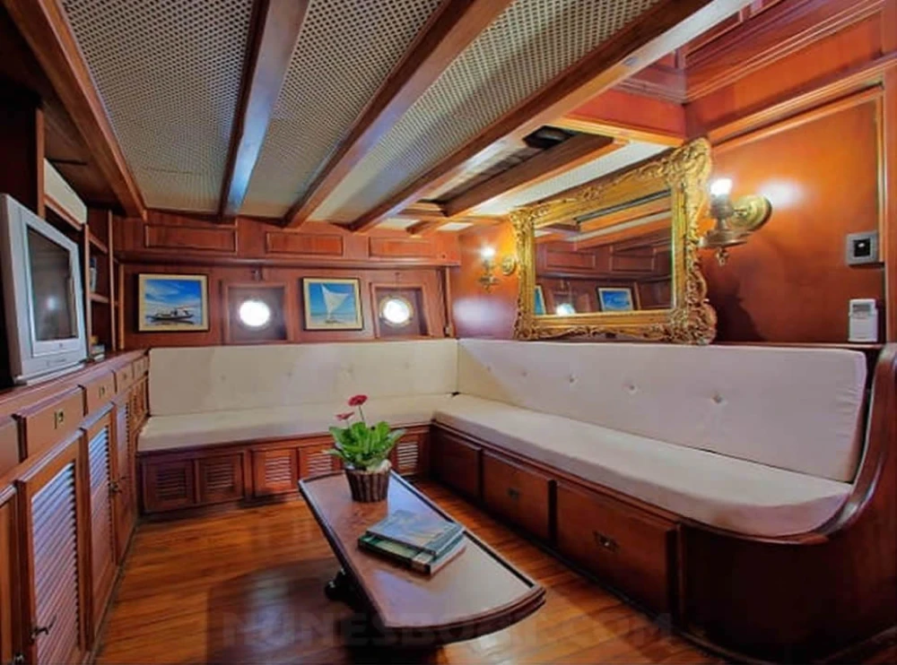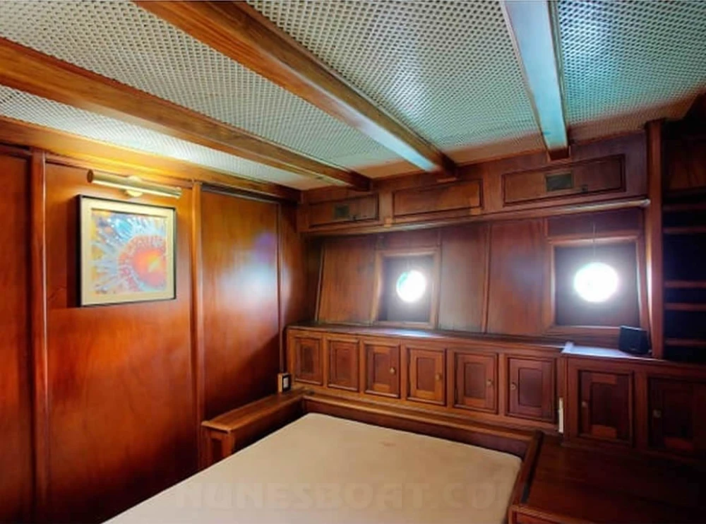 CÓD 9700 VELEIRO 108 PÉS (33 Metros): 1989, mercedes benz mtu 800hp, modelo 6R493 TZ60 1400 RPM, diesel, pé de galinha, reversor LS & S 4.1, âncora, 7 suítes, sendo uma compartilhada, 1 suíte dos marinheiros c/4 camas e guarda-roupa, cozinha completa em inox equipada c/6 portas de geladeira, 2 portas de freezer, 2 portas de armários p/mantimentos louças, adega, 3 decks c/muito conforto, partida elétrica c/baterias de 24 volts, (2) geradores de 30kva: Onan 3cc silenciados e MWM Modelo: D229/3 (*Precisam de manutenção), dessalinização da água do mar, compressor de ar p/buzina e capacidade de serviço 100 LBS, sistema de leme: acionamento hidráulico c/bomba, tanque e comando hidrostático, sistema de ancoragem: acionado por guincho eletromecânico c/capacidade de 18T, sistema de água doce pressurizada nas áreas de consumo, uso e serviço. OBS: Veleiro contém (6) tanques de fibra p/água doce c/capacidade de 1.000L cada. sistema de combustível c/3 tanques capacidade de 1500L cada. VELAS são feitas de Dacron, sendo: 1 Gênova 45m2 e 3 Chinês (1 x 85,7m2 / 1 x 80m2 / 1x 106,3m2) e 3 MASTROS de 23 metros cada. EQUIPAMENTOS ELETRÔNICOS: carregador de bateria 24V xantrex, c/possibilidade de instalação de placas solares; Ícone de rádio VHF 1 M 302; (2) faróis cavalo convidado 22 040; Indicador de posição do leme Raymarine ST60; Indicador de direção do vento Raymarine ST60; Chave Telefônica de Fax Thrane & Thrane TT-3617ª; Radar Furuno 1833C; Plotadora colorida de vídeo Furuno GD-1900C; Plotadora Furuno Color Video RPD 143; Sirene LCD 1 Cor Furuno FCV 600L; Tracfone KVH 252/50; KVH TracVision G6; Piloto Automático Furuno NavPilot 500; Piloto Automático Furuno NavPilot 511 (Display); Sonda de Rede Furuno ETR-6/10N; Receptor GPS Furuno GP-320B; Sensor de direção Furuno GP 500; Radiotelefone Furuno FS 1503 SSB; Radiotelefone Furuno FM 8500 VHF... F/c. Nunes (13)99706-0395